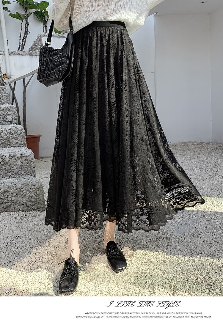 送料無料୨♥୧ スプリングサマーレディースマキシスカート ホワイトブラックレースミディ 大人ガーリー スウィート キュート カジュアル 春物 夏物 パープル AOS59502376643
