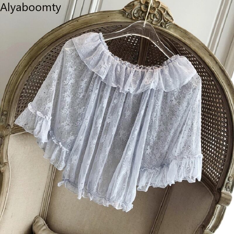 送料無料୨♥୧ スタイルサマーレディースシャツ カラーホワイトブラックメッシュブラウス フローラルレースクロップトップ トップス ピンク 大人ガーリー スウィート キュート カジュアル 夏物 花柄 AOS35422648494