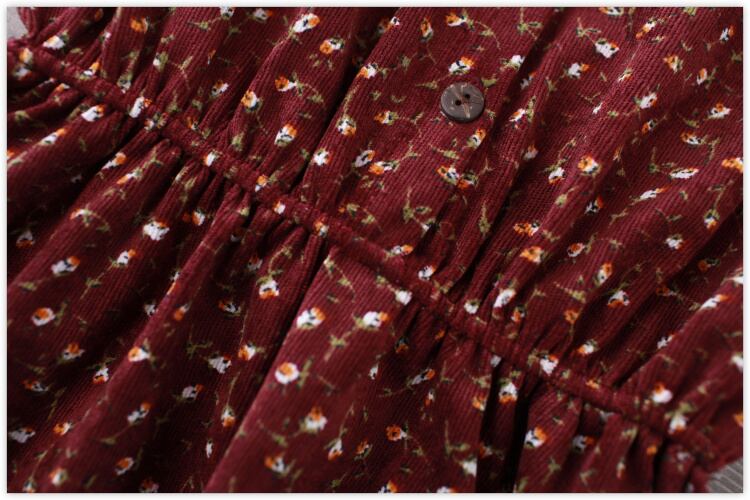 送料無料୨♥୧ スタイルウィンターレディースドレス ネイビーブルーレッドフローラルスタンダードコーデュロイミディ ロング レトロ 大人ガーリー スウィート キュート カジュアル 冬物 花柄 AOS86354999094