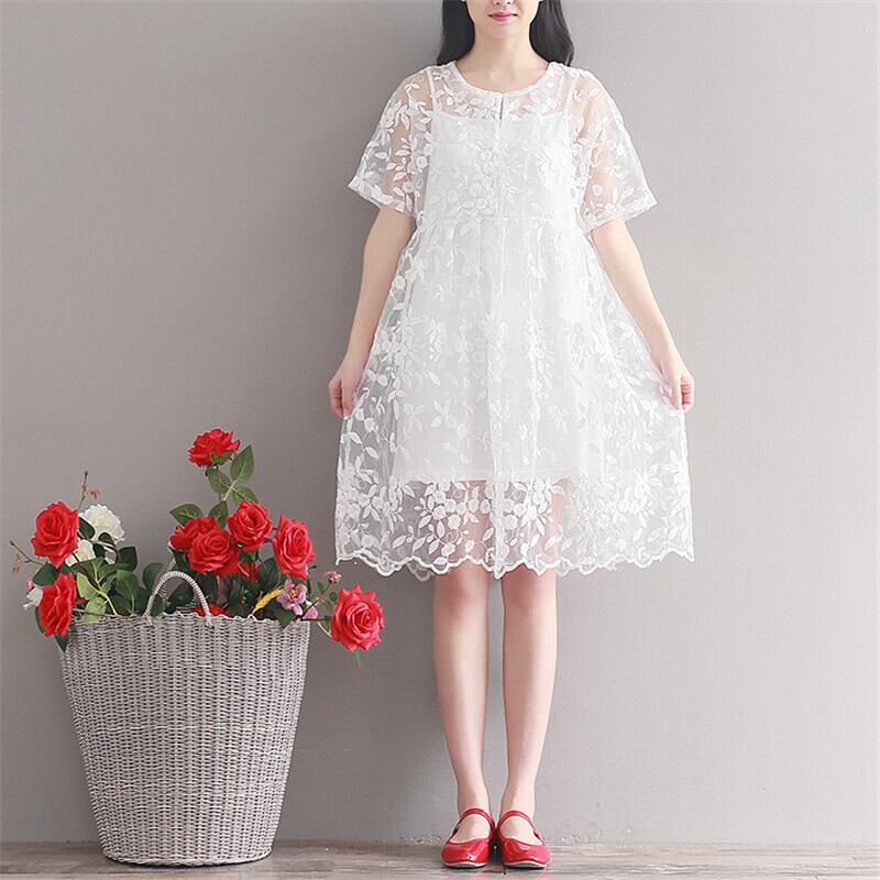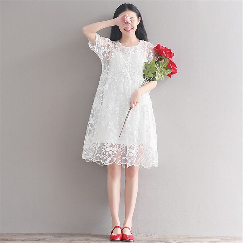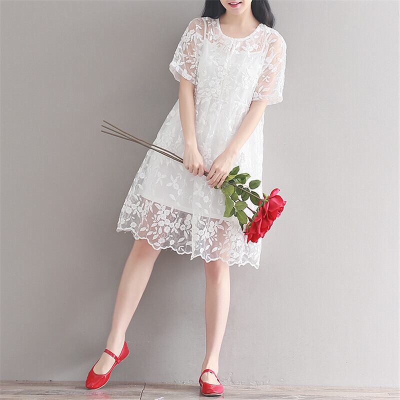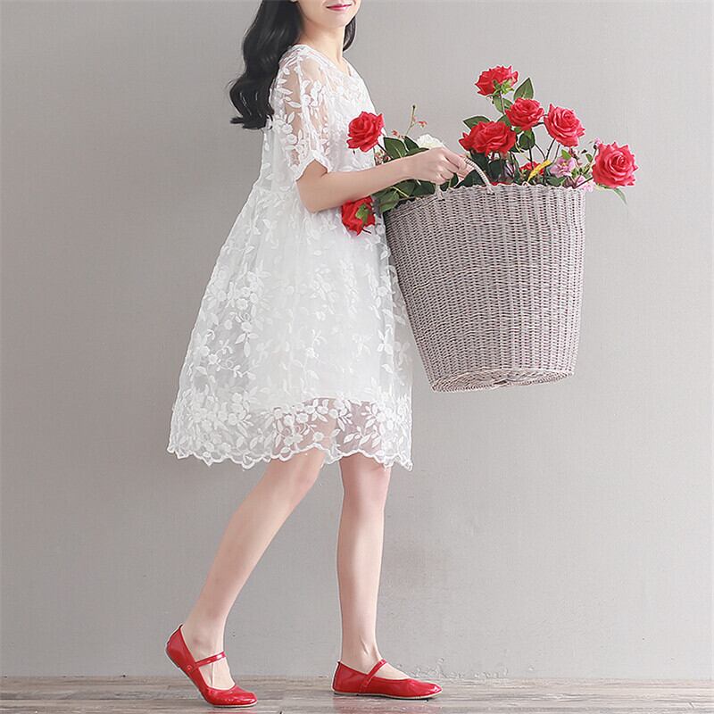 送料無料୨♥୧ サマーレディースドレス Vネックフローラル刺繍ルーズホワイト 大人ガーリー スウィート キュート カジュアル 夏物 花柄 AOS82241194131