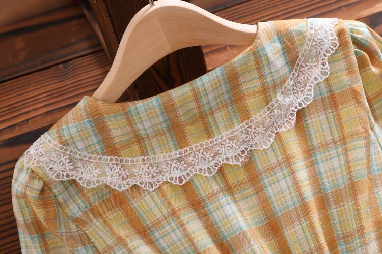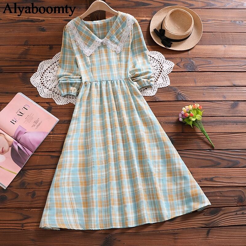 送料無料୨♥୧ スタイルオータムスプリングレディースロングドレス カラーレースヴィンテージ格子柄 大人ガーリー スウィート キュート カジュアル 春物 秋物 ビンテージ ヨーロピアン AOS31860015051