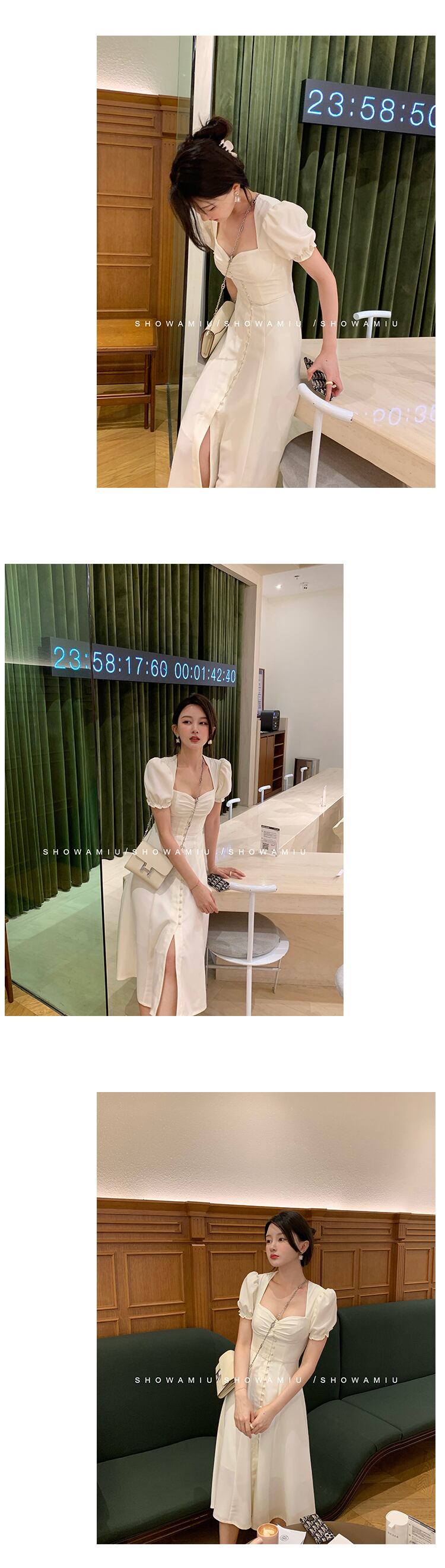 送料無料୨♥୧ スタイルサマーレディースミディAラインドレス カラーホワイトブラック水玉スリーブドレス ワンピース 夏物 スクウェア AOS46425296233