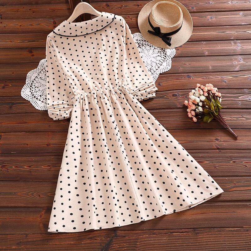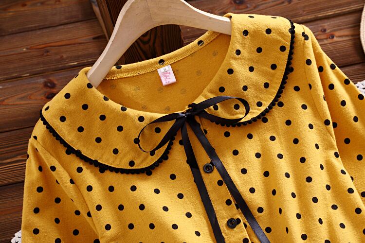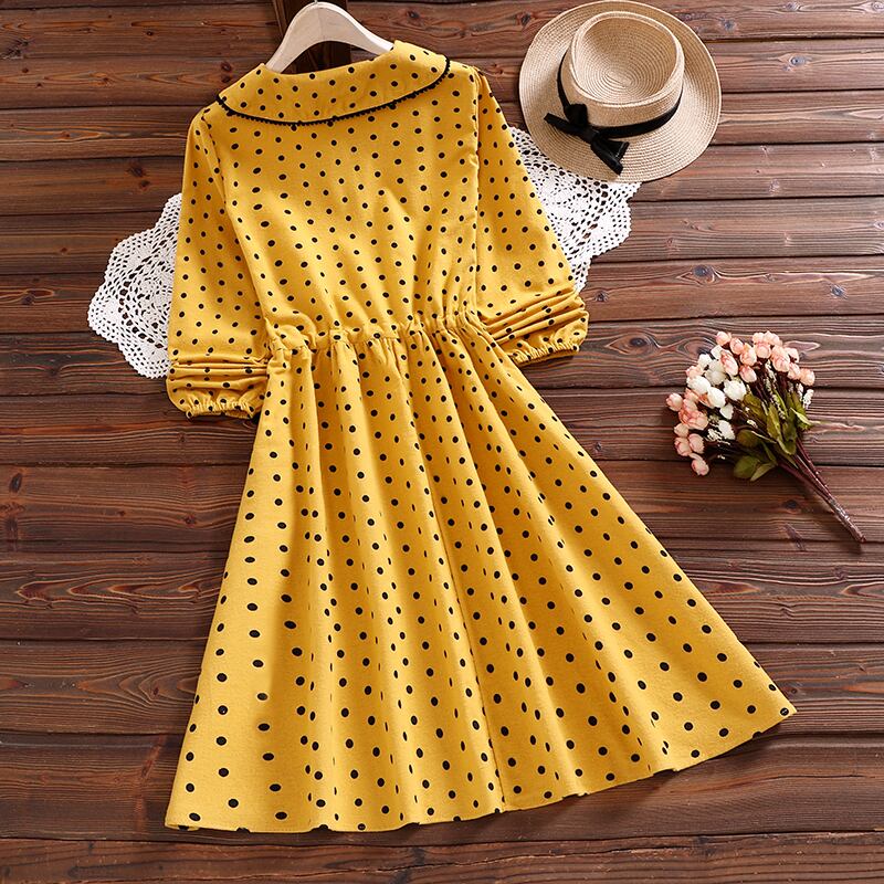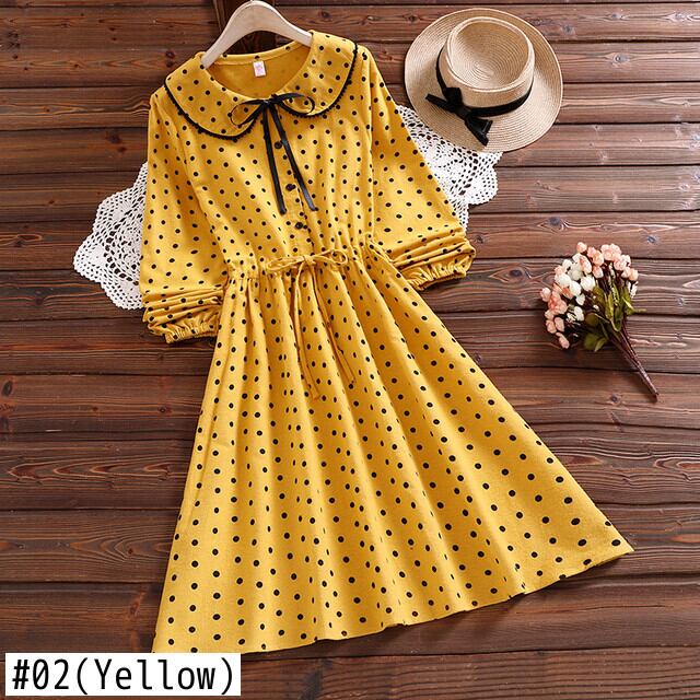 送料無料୨♥୧ スタイルレディースドレス カラーイエローレース長袖スリーブ水玉ドレス ワンピース ロング 大人ガーリー スウィート キュート カジュアル レースアップ AOS46684401257