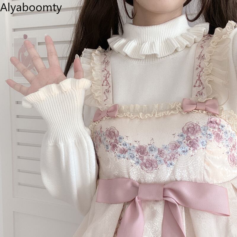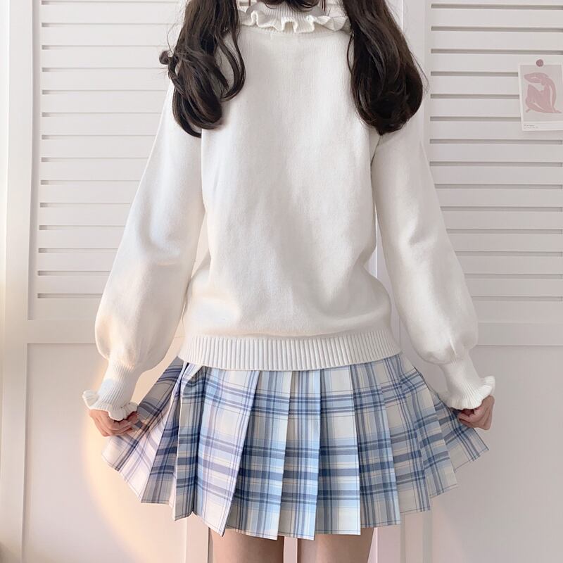 送料無料୨♥୧ スタイルオータムウィンターレディースセーター ソリッド ニットプルオーバー スリーブフリルトップス ラッフル 大人ガーリー スウィート キュート カジュアル 秋物 冬物 ソリッドカラー AOS87397195186