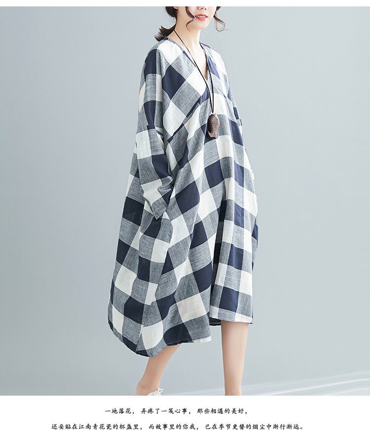 送料無料୨♥୧ サマーレディースシャツ ドレス Vネックブラックネイビーブルー格子柄 コットン 夏物 AOS66921496475