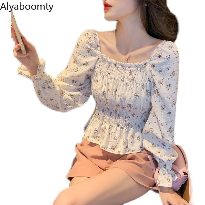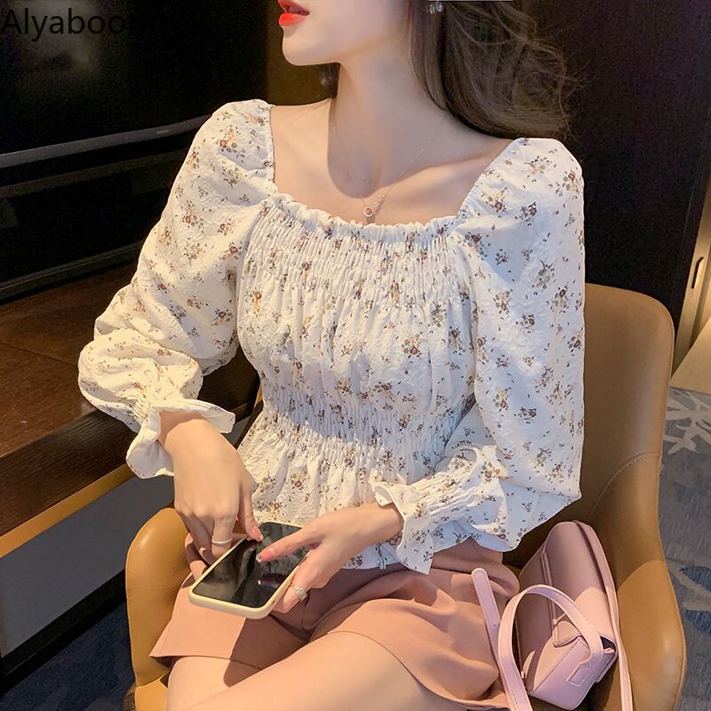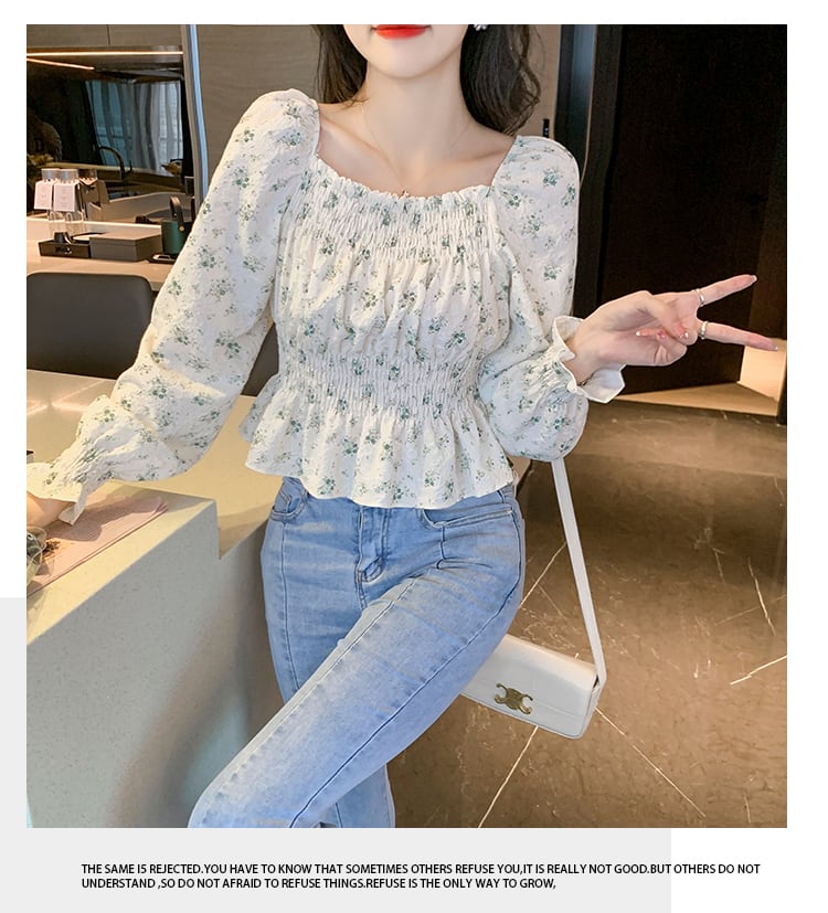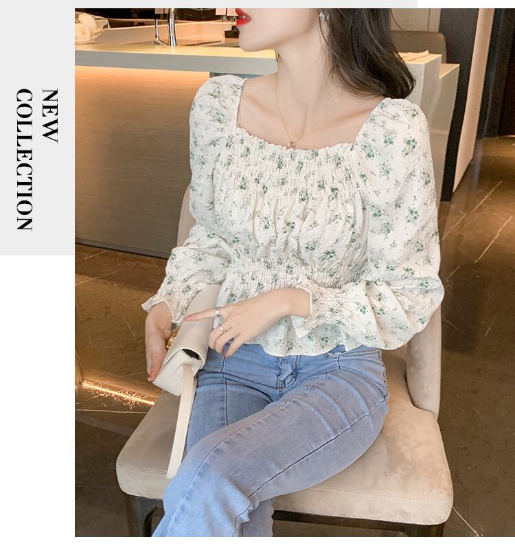 送料無料୨♥୧ スプリングサマーレディースクロップトップ トップス カラーフローラルプリントブラウス スリーブシャツ 大人ガーリー スウィート キュート カジュアル 春物 夏物 花柄 スクウェア AOS97875621501
