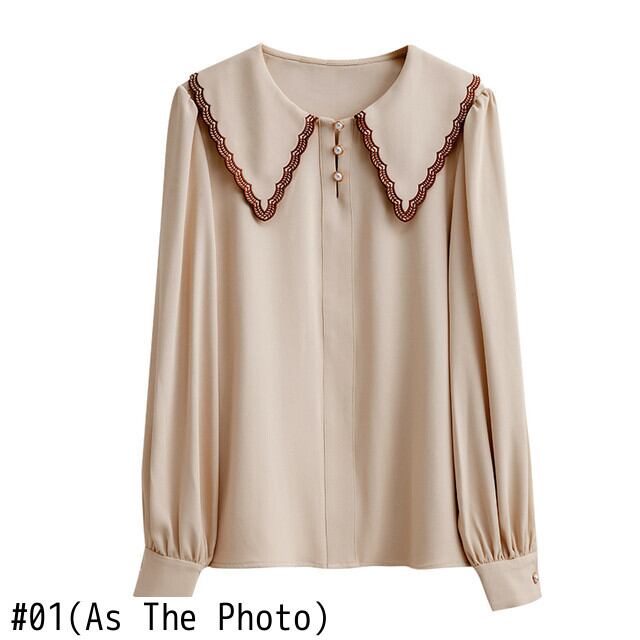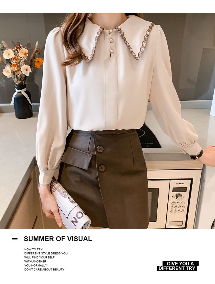 送料無料୨♥୧ スプリングオータムレディースブラウス カラー長袖スリーブシフォンシャツ ロング 春物 秋物 会社 学校 通勤や通学にも AOS40693529652