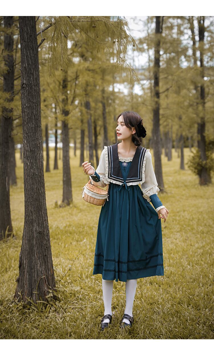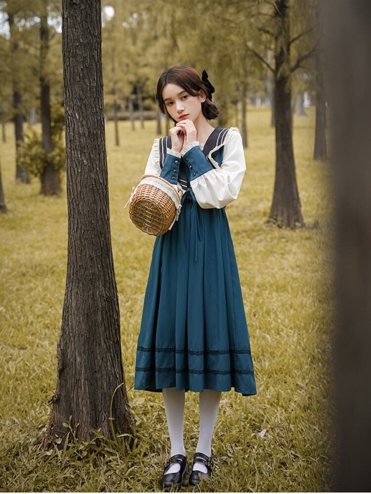 送料無料୨♥୧ スプリングオータムレディースドレス カラーフローラル刺繍長袖スリーブ ロング エラスティック 伸縮 大人ガーリー スウィート キュート カジュアル 春物 秋物 花柄 AOS90723109160