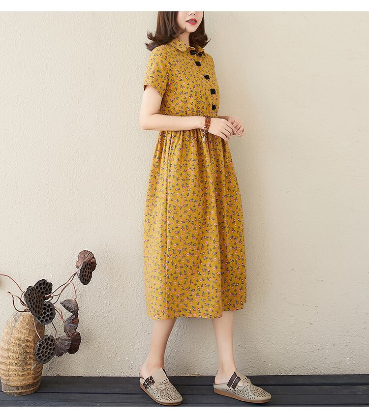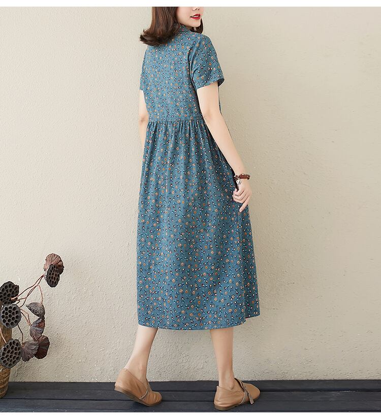 送料無料୨♥୧ サマーレディースヴィンテージミディドレス カラーフローラルプリント半袖スリーブロング ショート コットン ハーフスリーブ 夏物 花柄 ビンテージ AOS87360833052