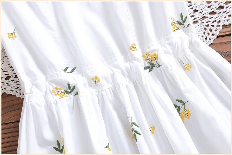 送料無料୨♥୧ サマーレディースホワイトドレス カラーレースフローラル刺繍 コットン 大人ガーリー スウィート キュート カジュアル 夏物 花柄 レースアップ スクウェア AOS70631068085