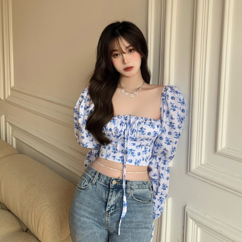 送料無料୨♥୧ サマーレディースクロップトップ トップス カラーフローラルプリントブラウス スリーブジッパーシャツ かわいい 夏物 花柄 スクウェア AOS87827373541