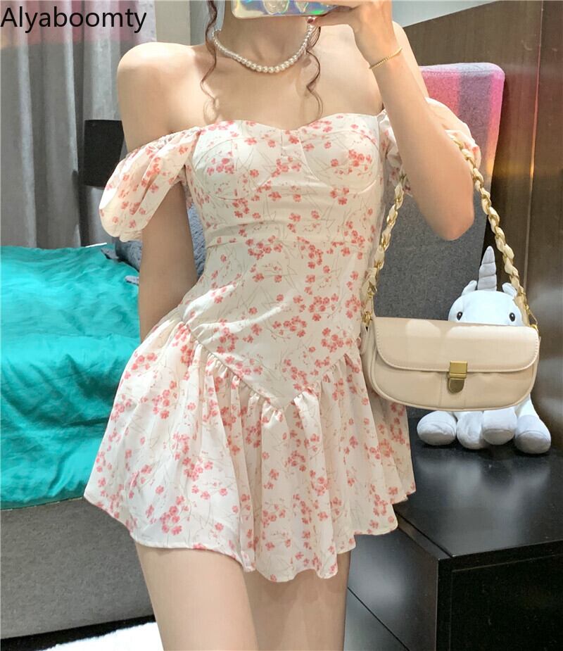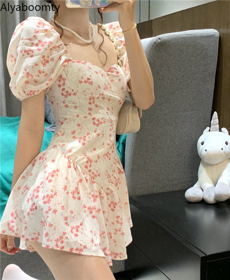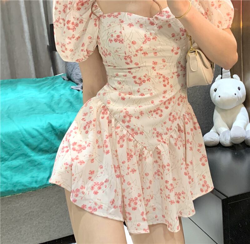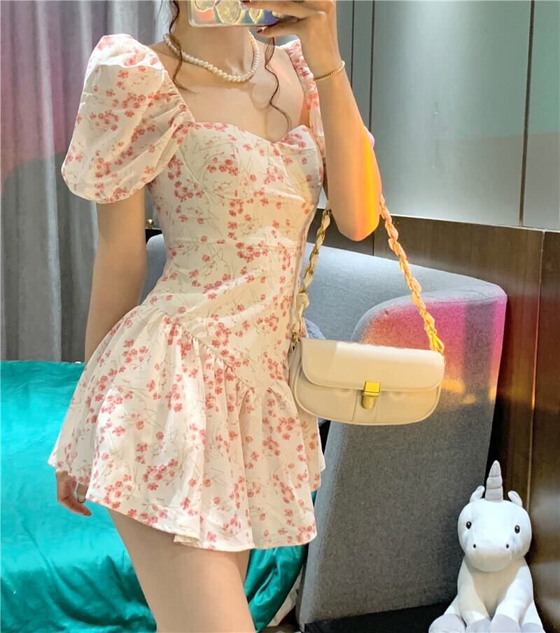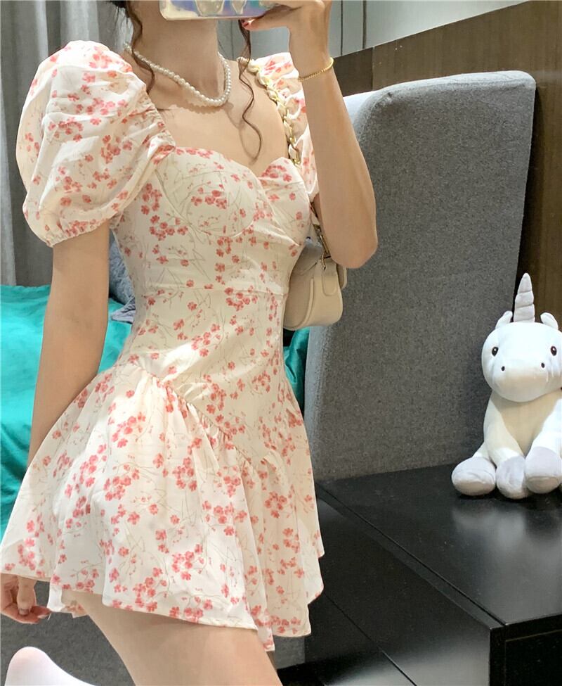 送料無料୨♥୧ サマーレディースミニドレス フローラルスリーブフリルショート ラッフル 大人ガーリー スウィート キュート カジュアル 夏物 花柄 AOS39510400152