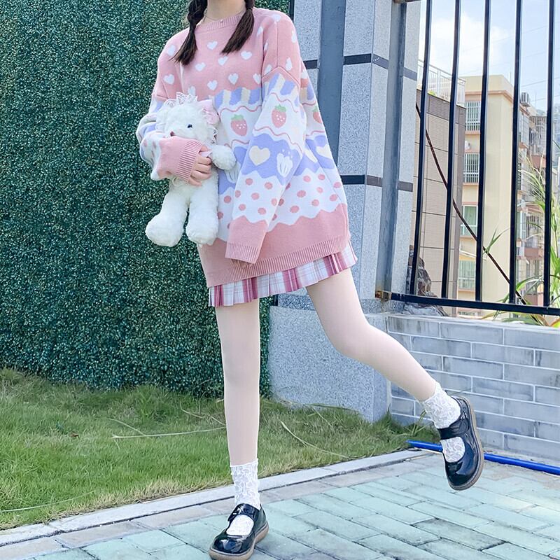 送料無料୨♥୧ オータムウィンターレディースセーター ブルーニットプルオーバー ハート ピンク 大人ガーリー スウィート キュート カジュアル 秋物 冬物 AOS1843631955