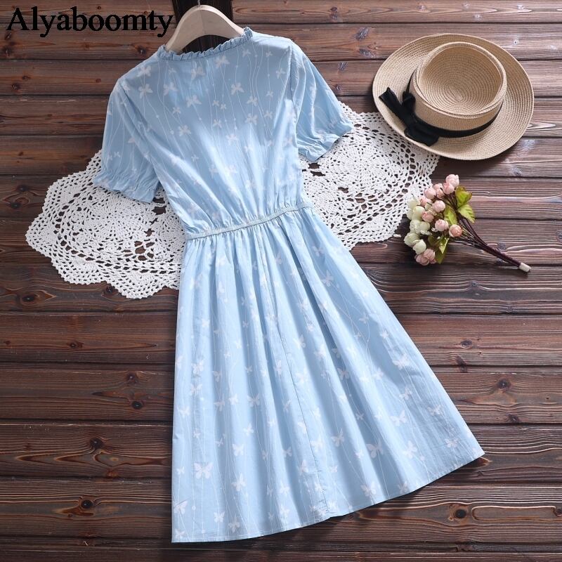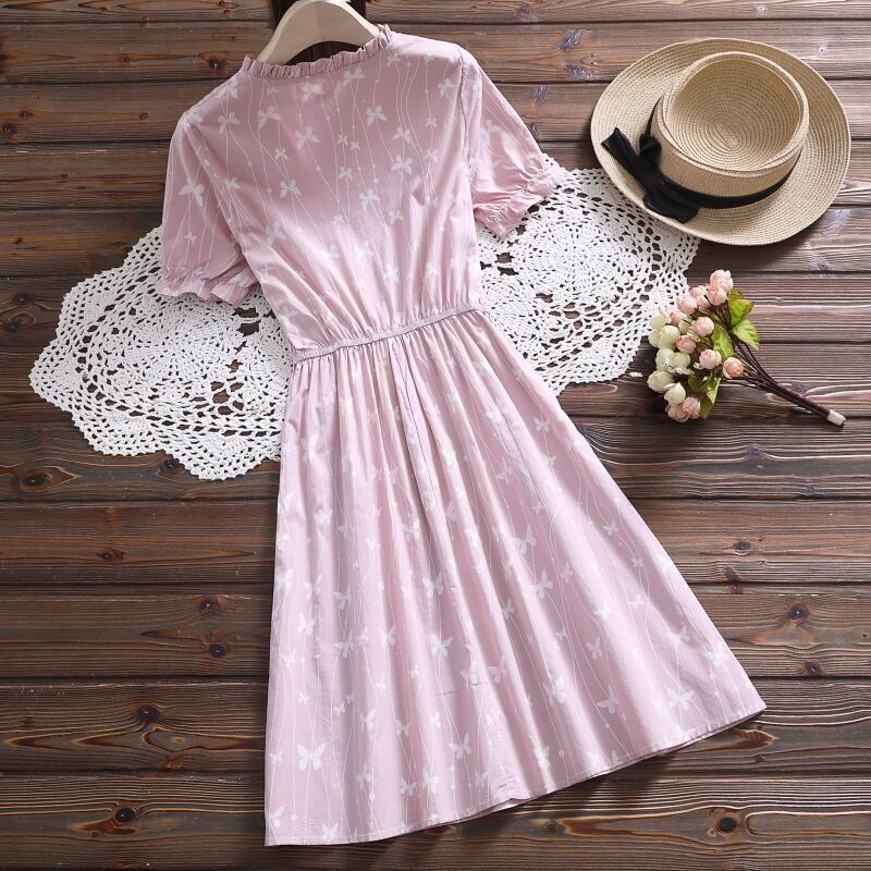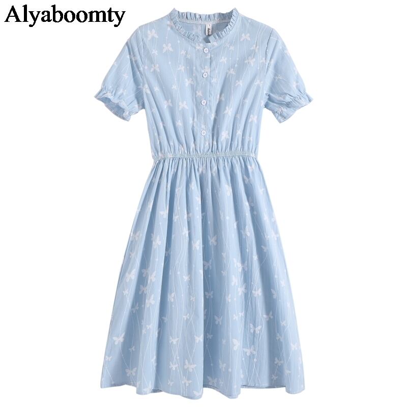 送料無料୨♥୧ スタイルサマーレディースAラインドレス カラーButterflyデザイン プリントブルー ピンク 大人ガーリー スウィート キュート カジュアル 夏物 AOS85966229970