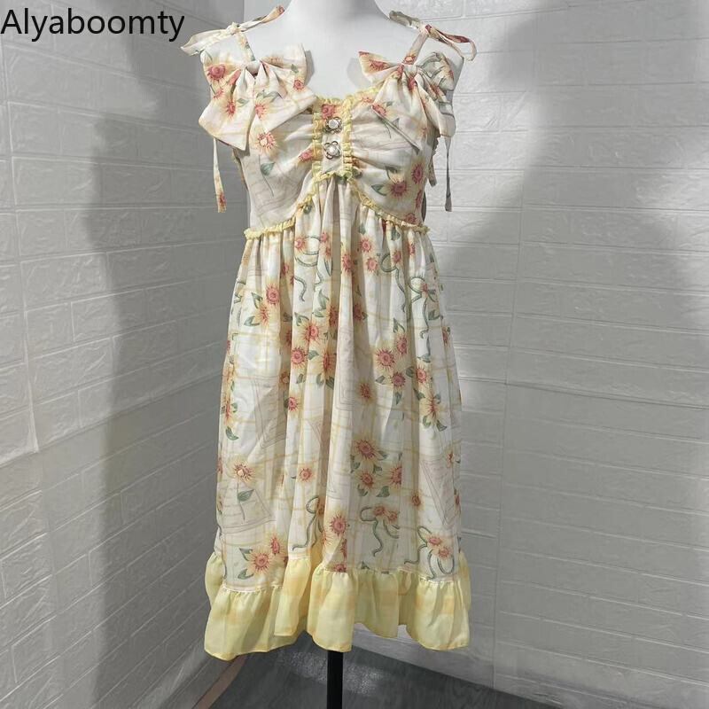 送料無料୨♥୧ サマーレディースドレス ノースリーブフリル ラッフル 大人ガーリー スウィート キュート カジュアル 夏物 フラワーデザイン AOS84283525147