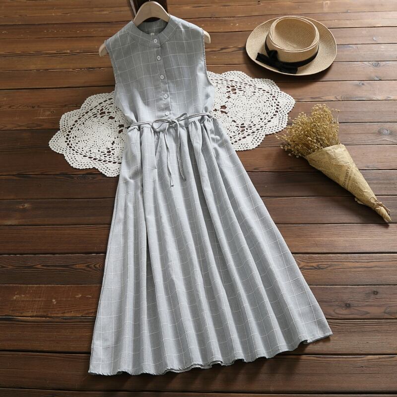 送料無料୨♥୧ スタイルサマーレディースロングブルーグレー格子柄フェミニーズノースリーブレースヴィンテージ 大人ガーリー スウィート キュート カジュアル 夏物 レースアップ ビンテージ AOS40582282696