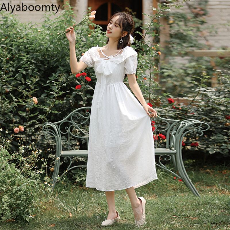 送料無料୨♥୧ サマーレディースロングドレス カラーButterflyデザイン ホワイトリボン 夏物 スクウェア AOS68821685642