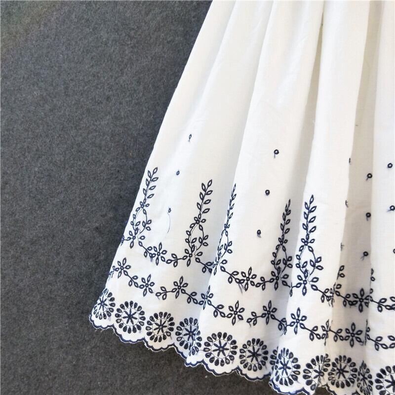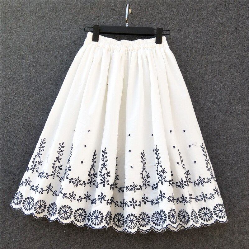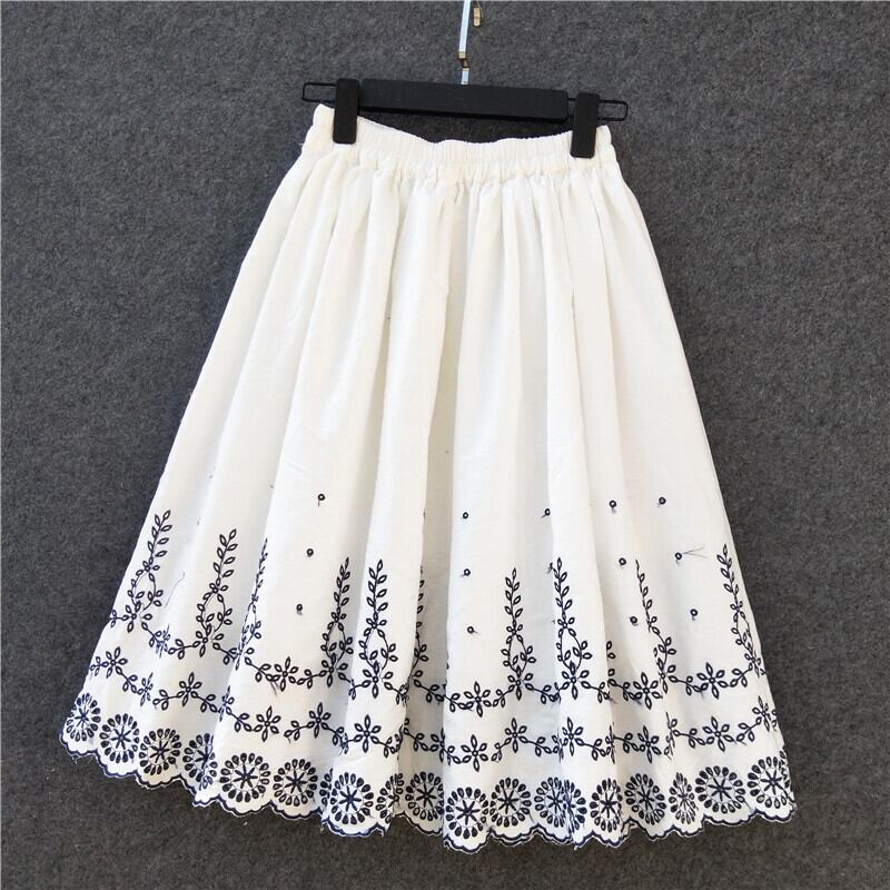 送料無料୨♥୧ サマーレディースホワイトスカート ウェストフローラル刺繍 コットン 大人ガーリー スウィート キュート カジュアル 夏物 花柄 AOS39549081849