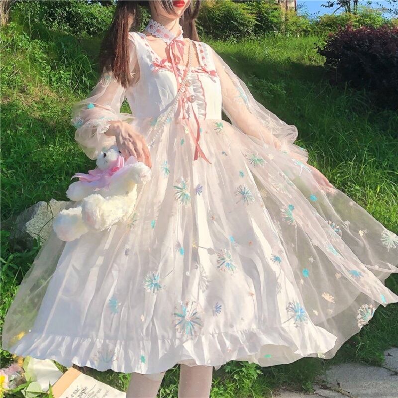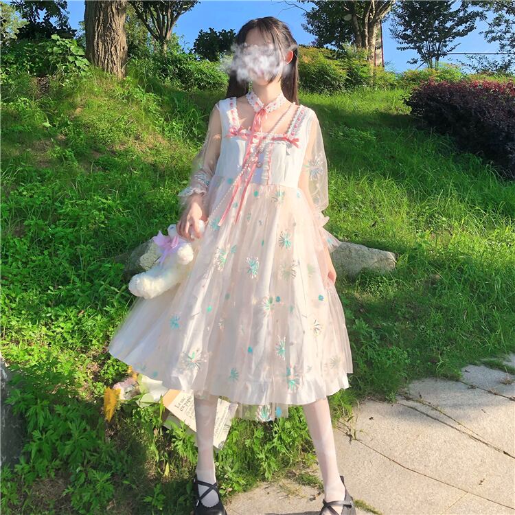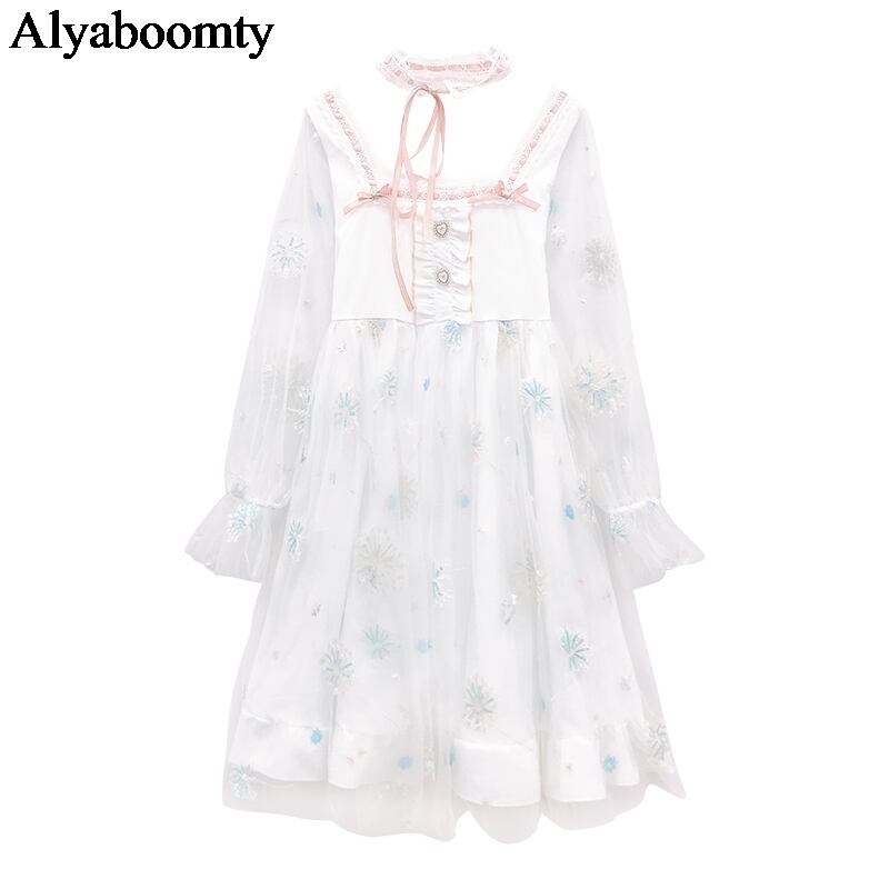 送料無料୨♥୧ スタイルスプリングオータムレディースドレス フローラル刺繍フリル ラッフル 大人ガーリー スウィート キュート カジュアル 春物 秋物 花柄 AOS80038863752
