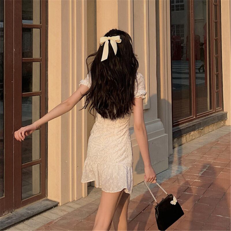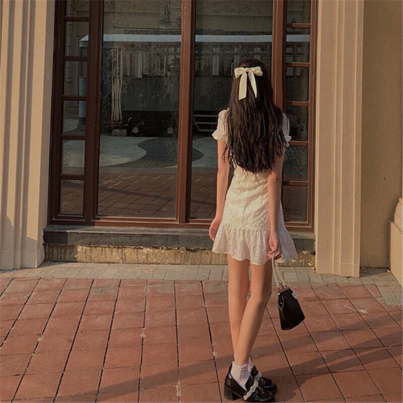 送料無料୨♥୧ サマーレディースホワイトミニドレス カラーバンドスリーブフリルドレス ワンピース ラッフル 夏物 スクウェア AOS74051333104