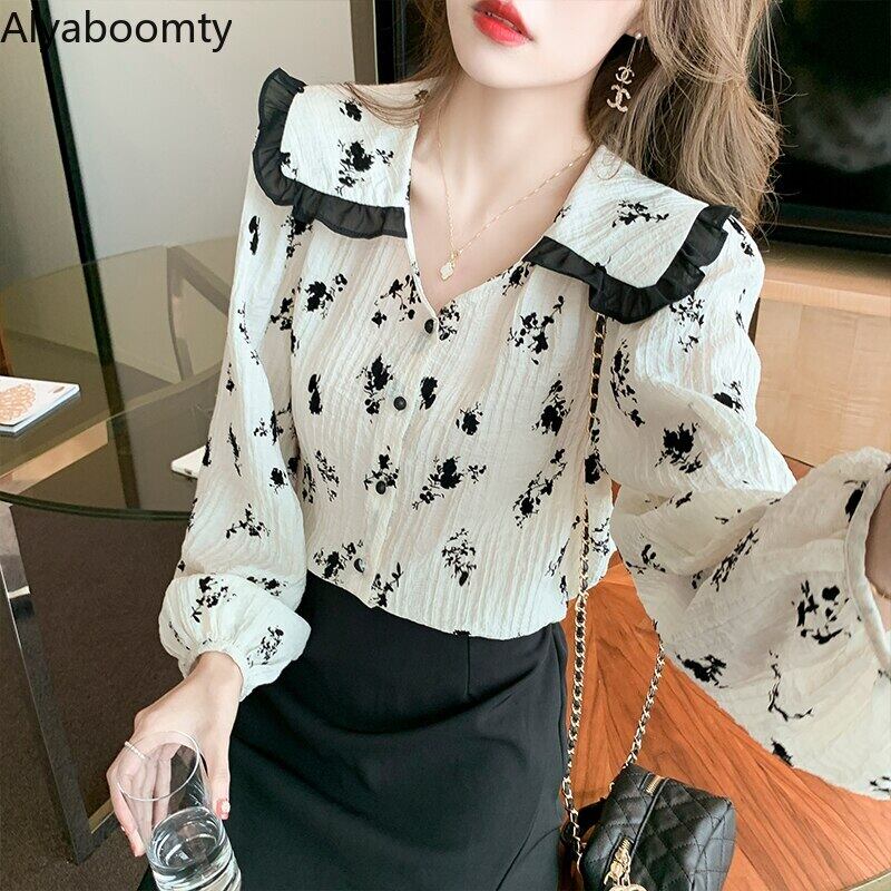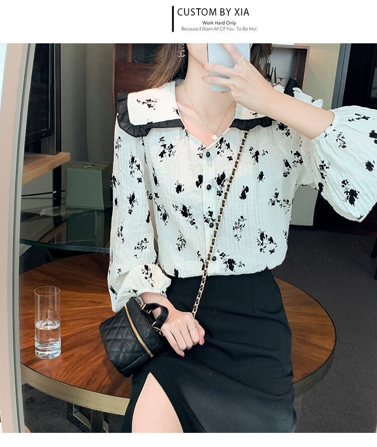 送料無料୨♥୧ スプリングオータムレディースブラウス カラーブラックプリントスリーブシャツ 大人ガーリー スウィート キュート カジュアル 春物 秋物 AOS19008492334