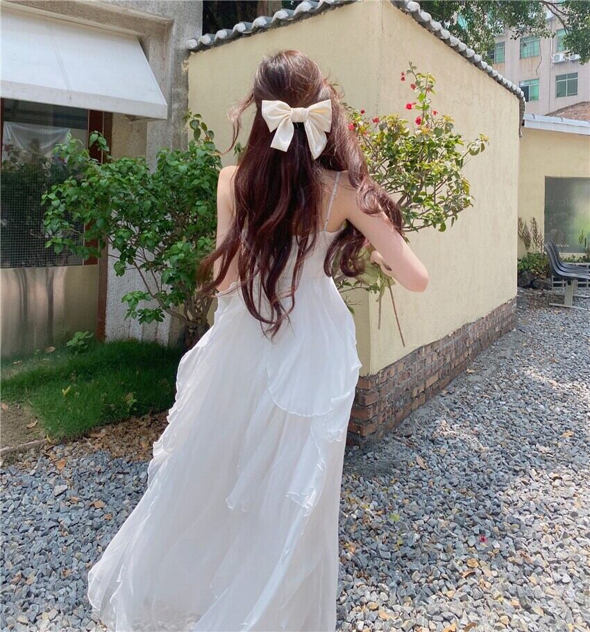 送料無料୨♥୧ サマーレディースマキシロングドレス ホワイトフリル ラッフル 夏物 ビーチ AOS90208826413