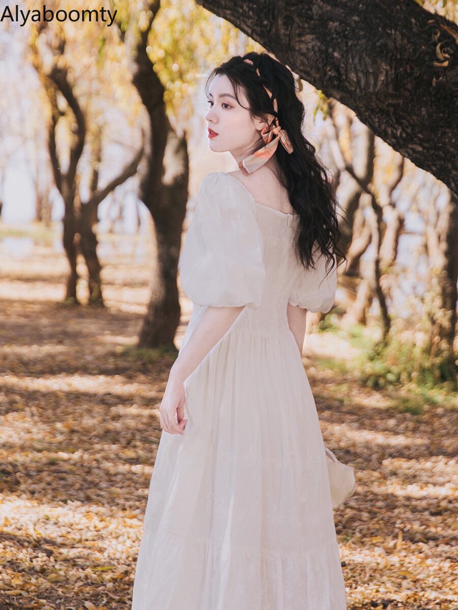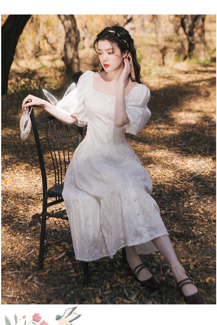 送料無料୨♥୧ サマーレディースホワイトミディドレス カラーフローラルスリーブドレス ワンピース 夏物 花柄 スクウェア AOS40335881879