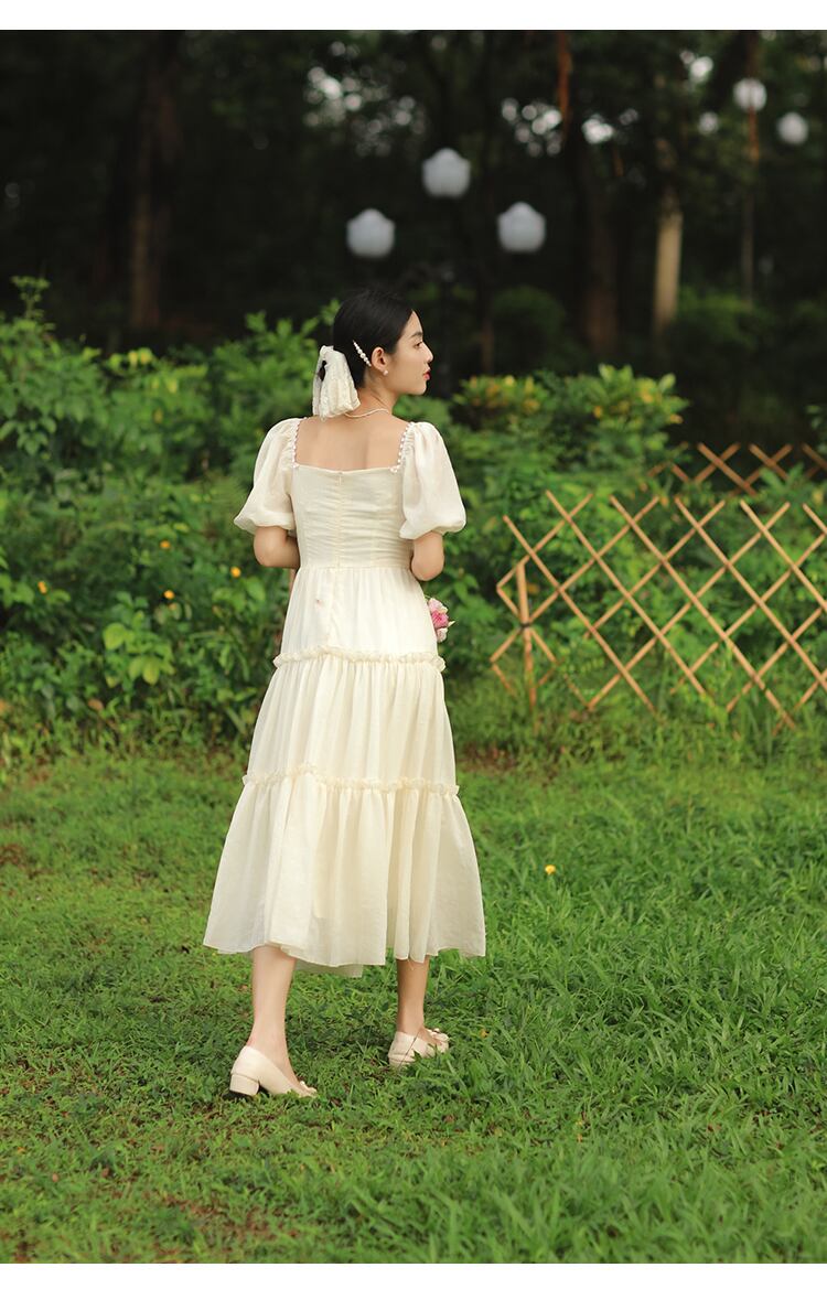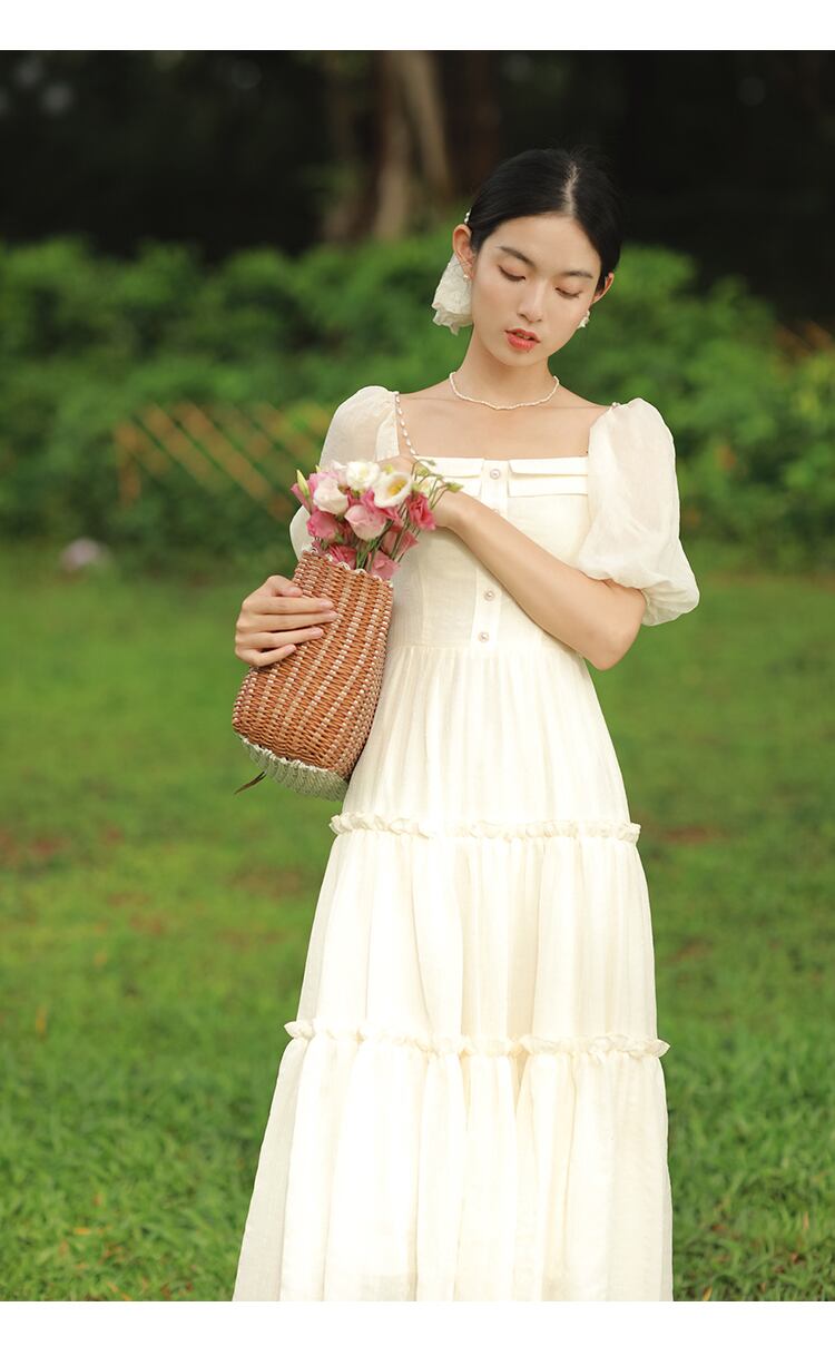 送料無料୨♥୧ サマーレディースロングドレス カラーパールストラップ フリルスリーブミディ レッド ラッフル 夏物 真珠 スクウェア AOS92233655608