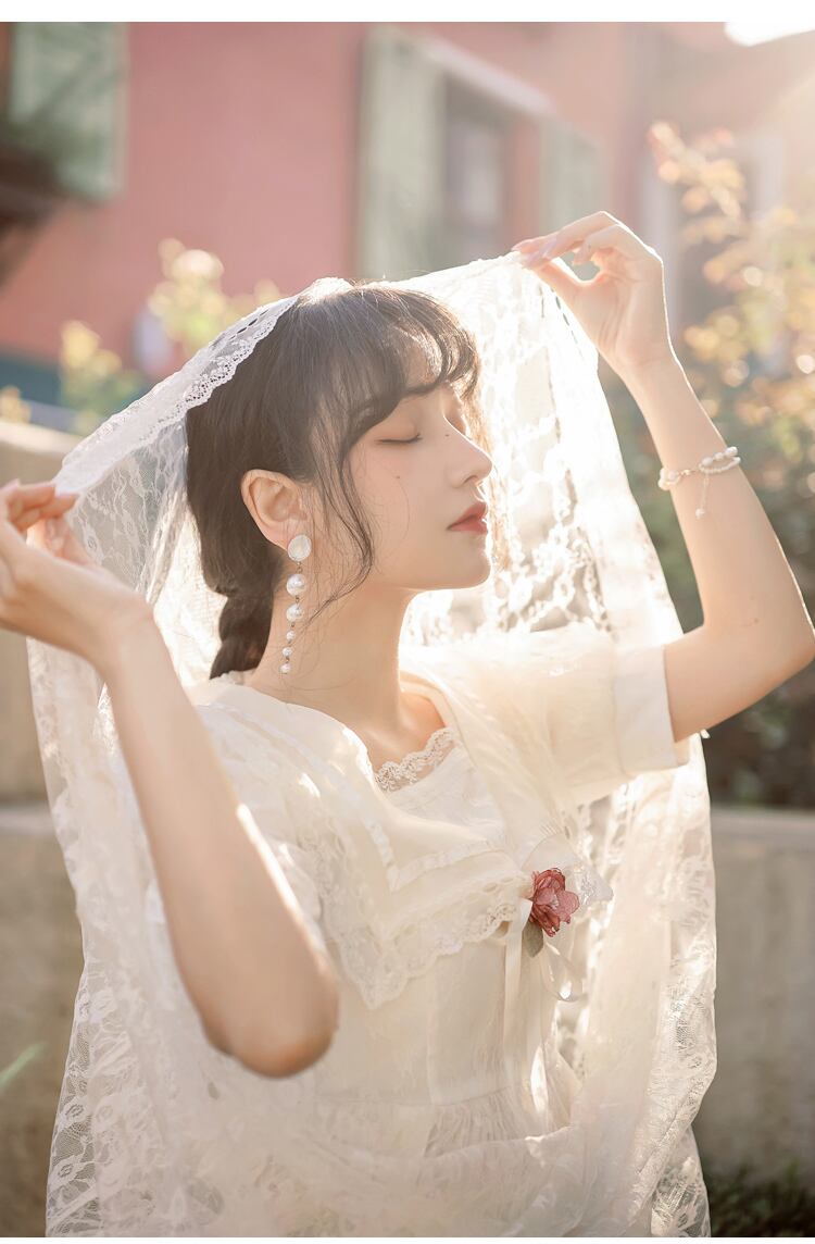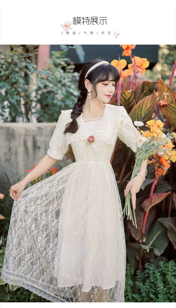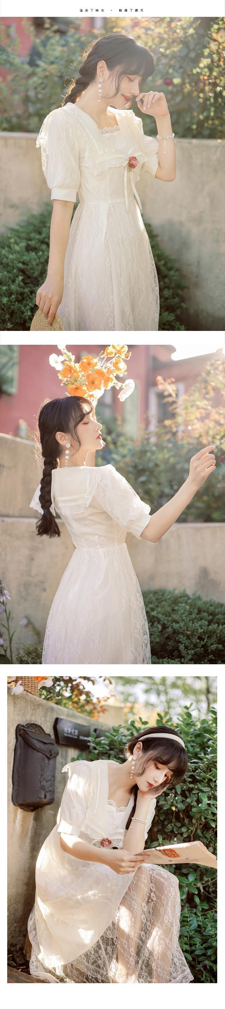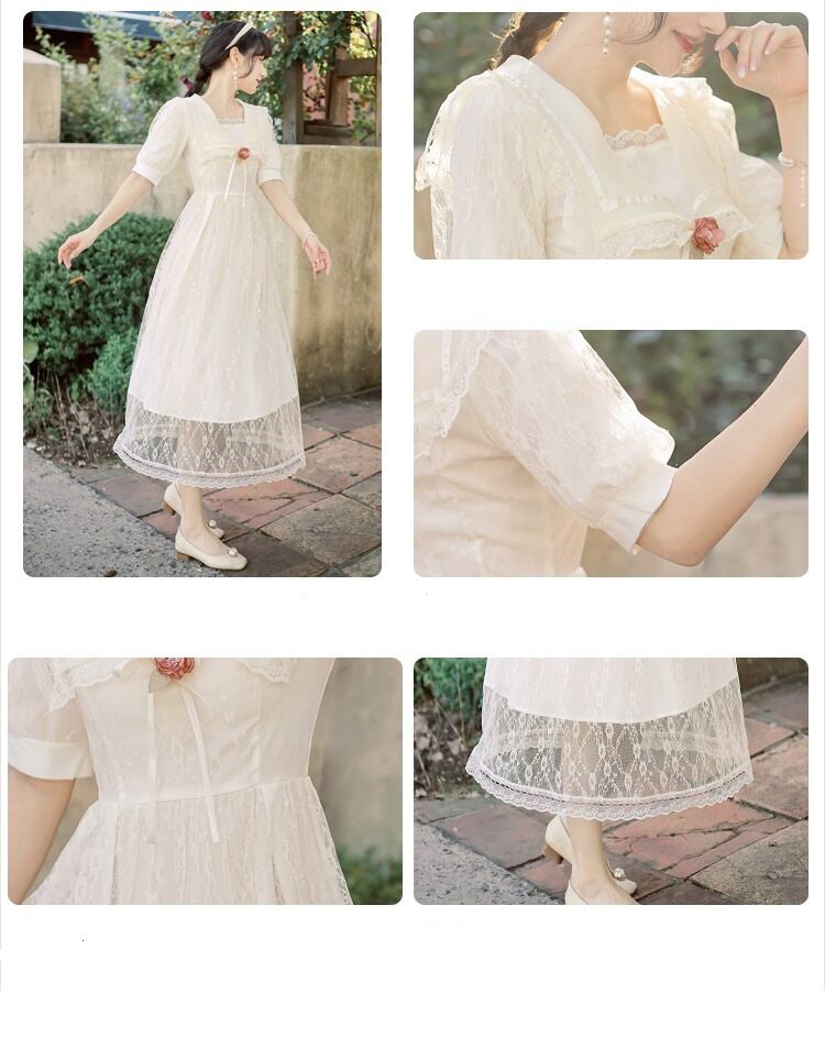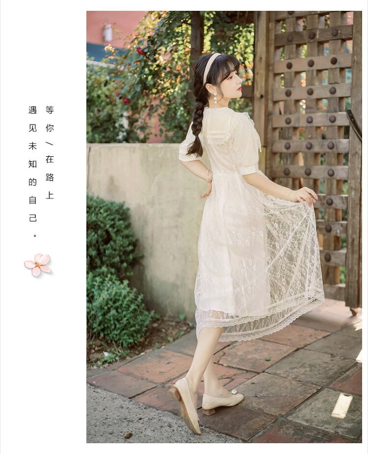 送料無料୨♥୧ サマーレディースミディドレス カラーウェストスリーブレース 大人ガーリー スウィート キュート カジュアル 夏物 AOS1936601413