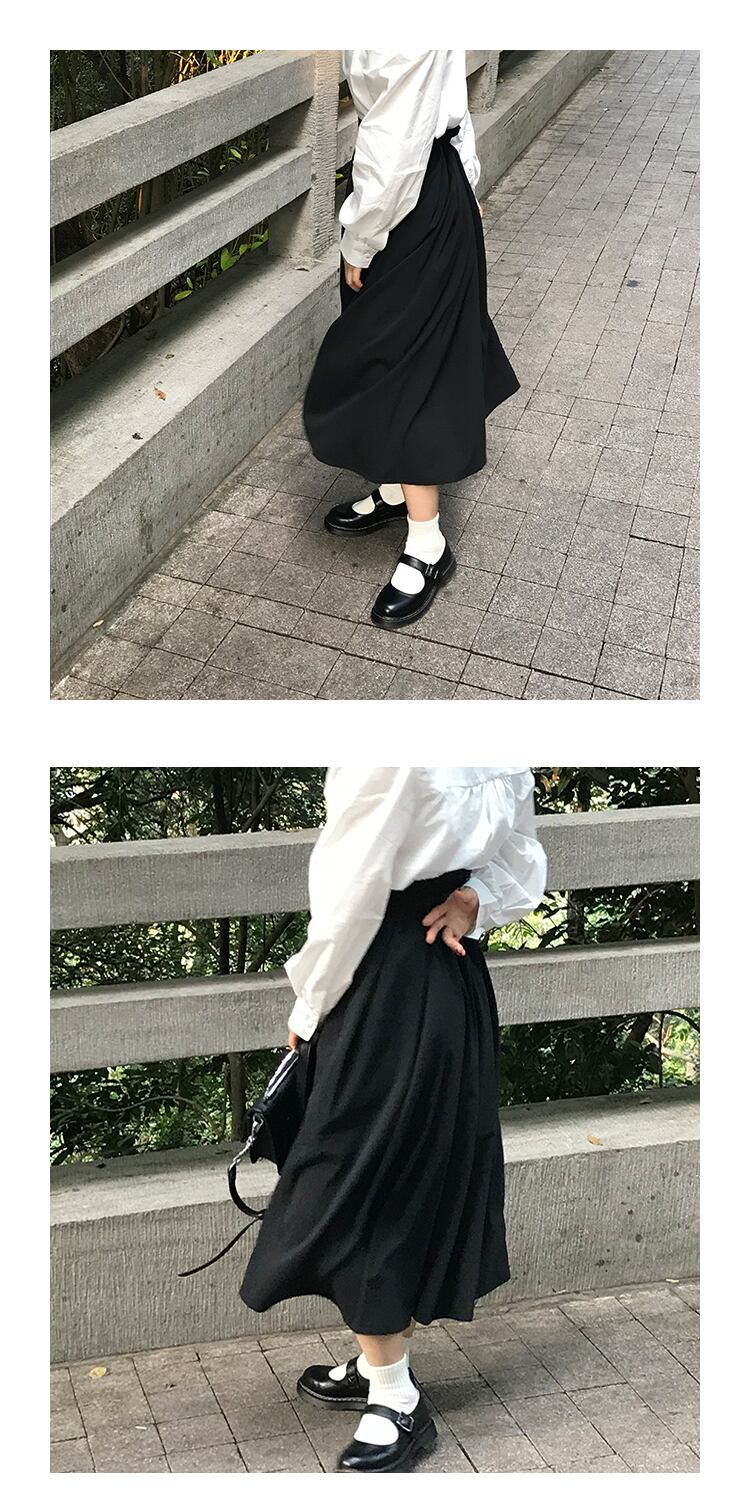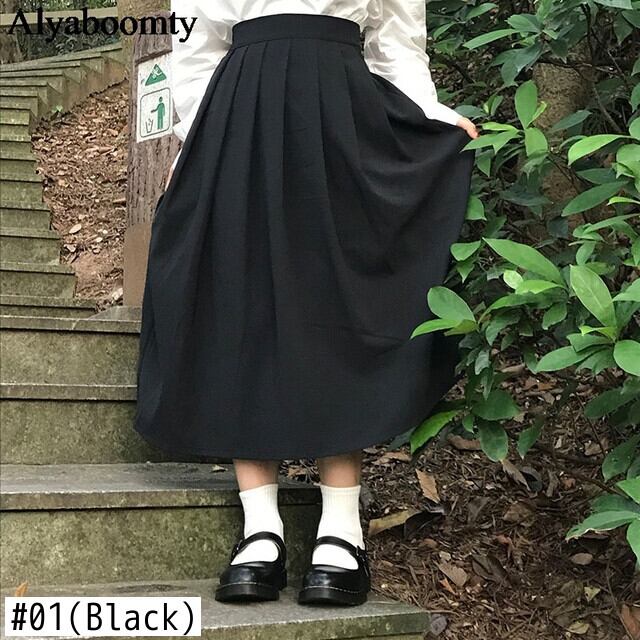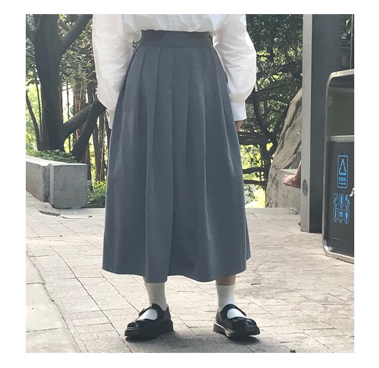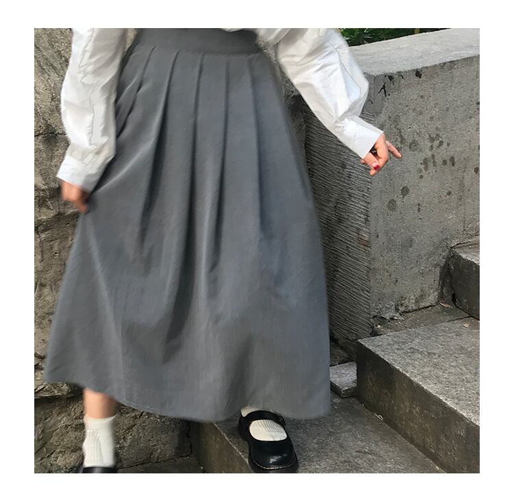 送料無料୨♥୧ スプリングスタイルレディースロングスカート ウェストソリッド ヴィンテージグレーブラックプリーツ 春物 ソリッドカラー ビンテージ AOS7066612251