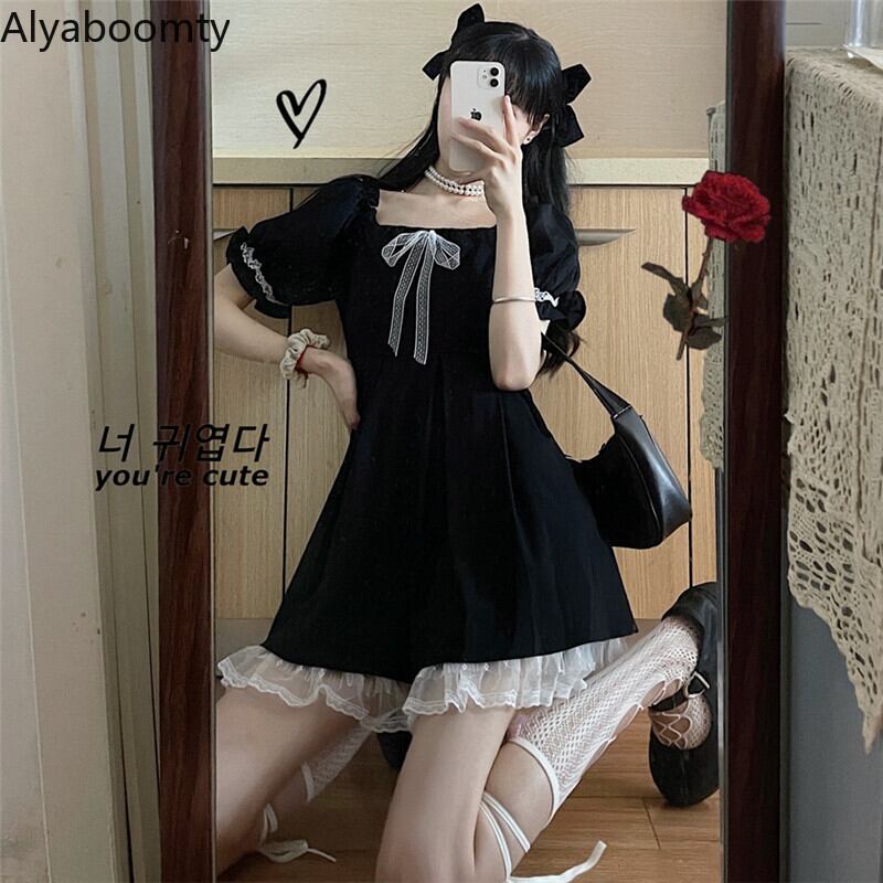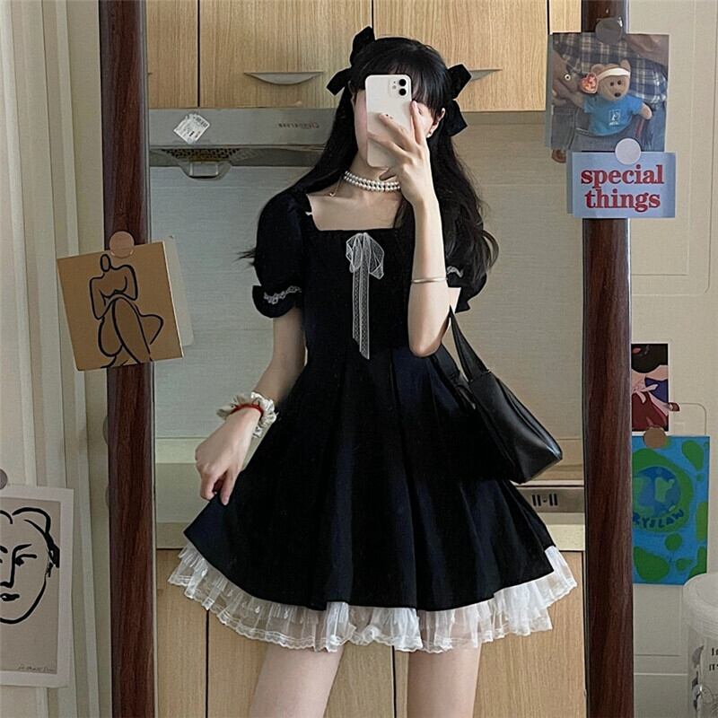 送料無料୨♥୧ サマーレディースブラックミニドレス カラーフリル ラッフル 大人ガーリー スウィート キュート カジュアル かわいい 夏物 スクウェア AOS95615716051