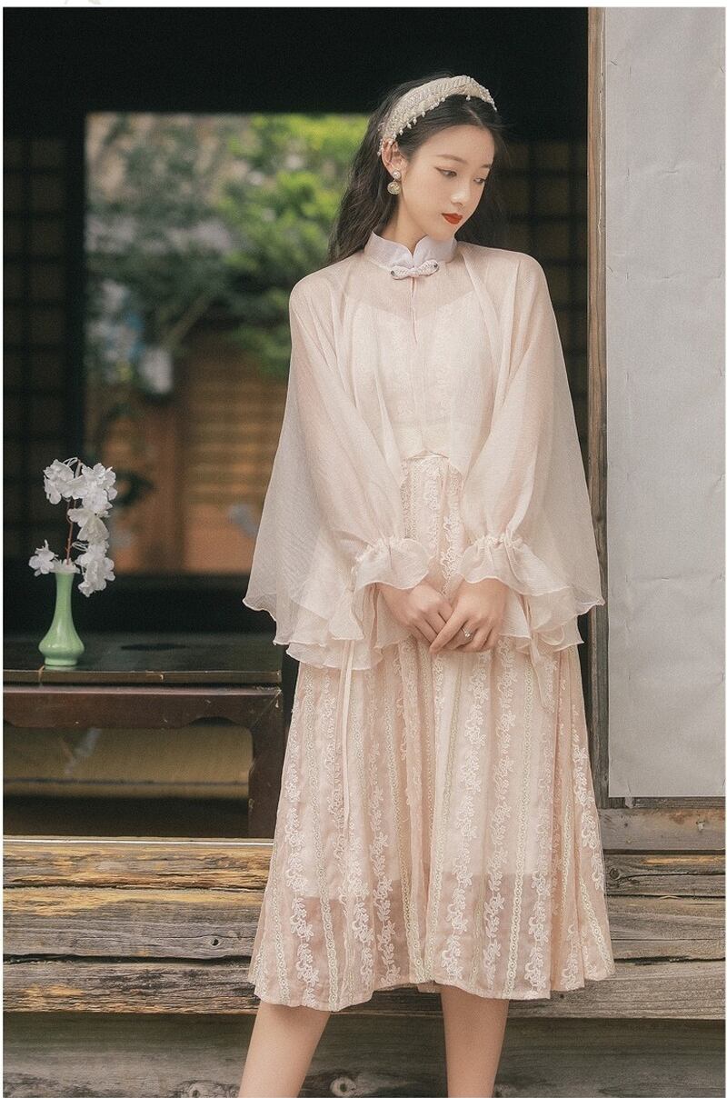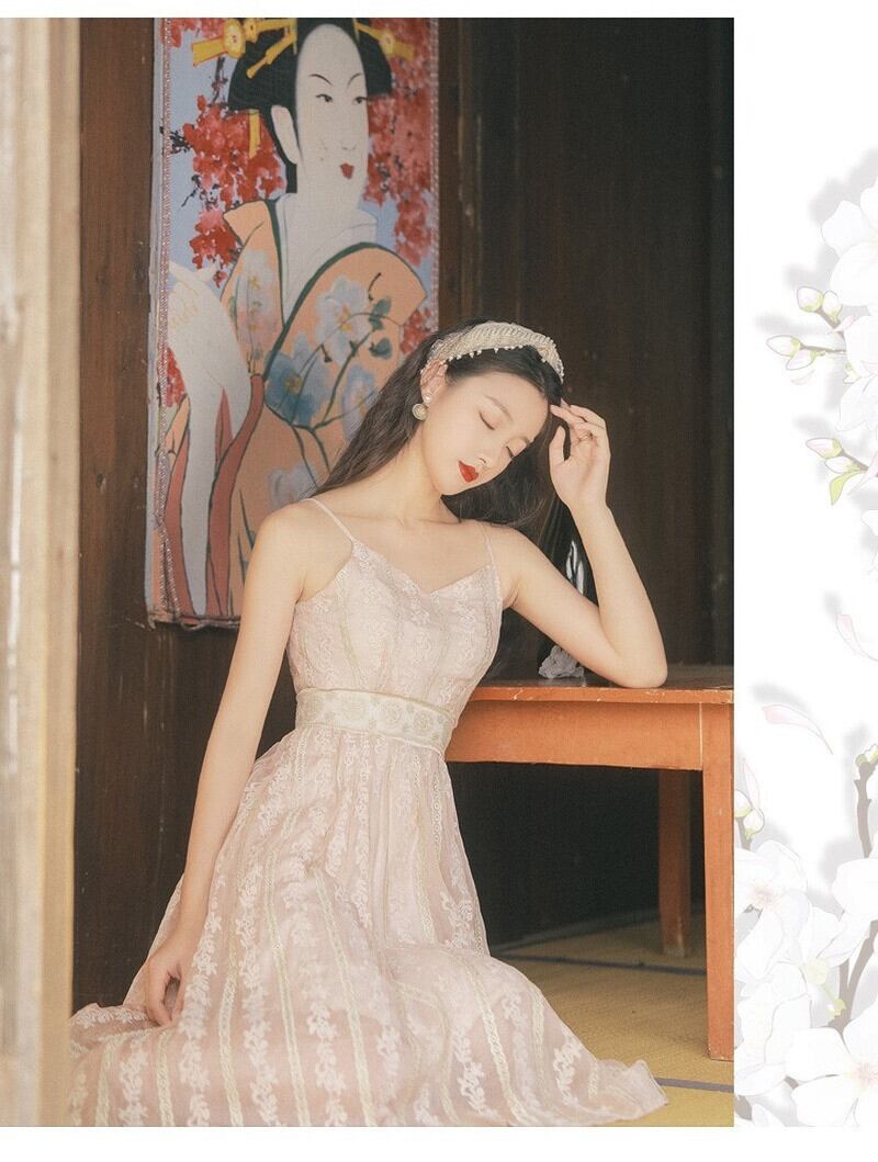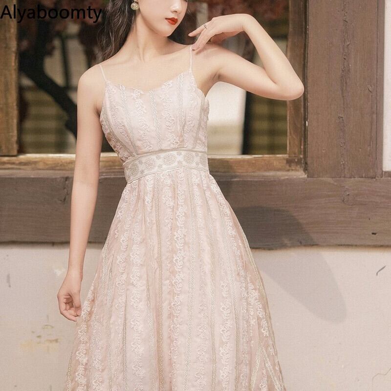 送料無料୨♥୧ サマーレディースノースリーブレースドレス Vネックフローラル刺繍ミディ 大人ガーリー スウィート キュート カジュアル 夏物 花柄 AOS23607015973