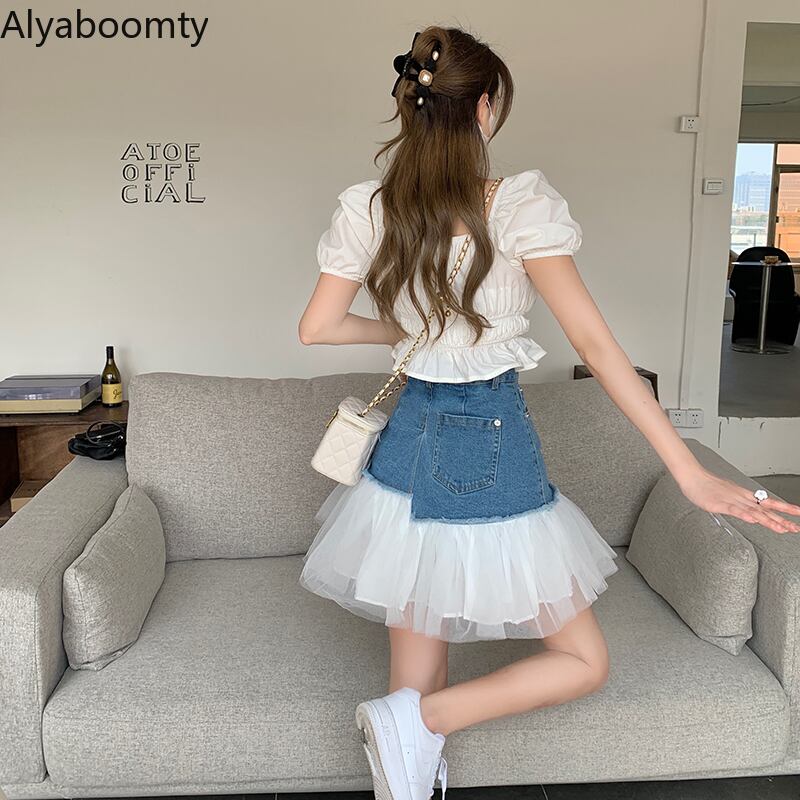 送料無料୨♥୧ サマーレディースミニスカート ウェストブルーブラックメッシュパッチワークガウン 大人ガーリー スウィート キュート カジュアル 夏物 AOS41270998850