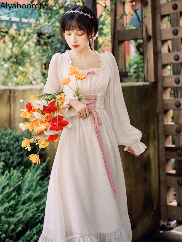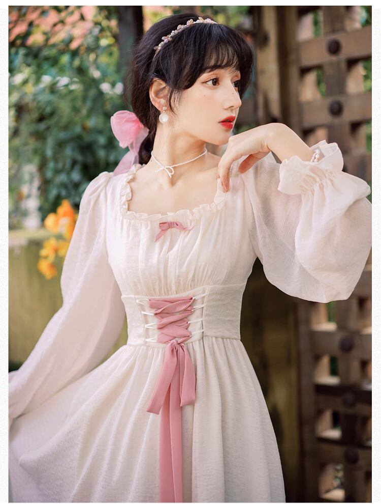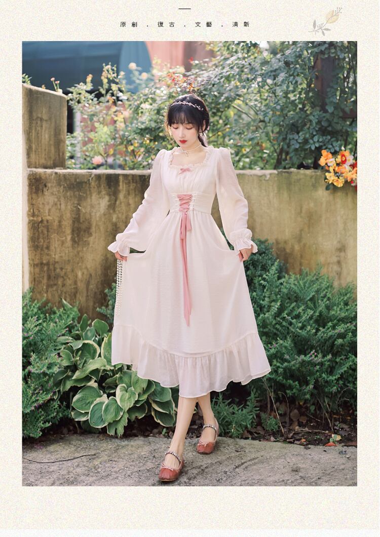 送料無料୨♥୧ スタイルスプリングオータムロングドレス カラーバンドスリーブフリル ラッフル 春物 秋物 スクウェア AOS22935608896