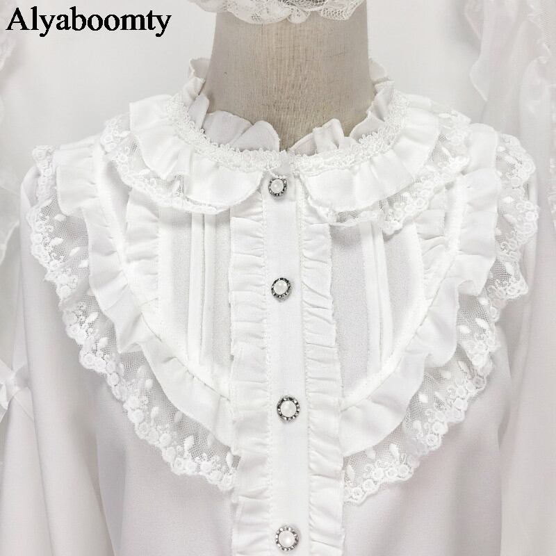 送料無料୨♥୧ スタイルオータムスプリングレディースホワイトシャツ スタンドカラーカラーフリルフェミニーズブラウス ラッフル 大人ガーリー スウィート キュート カジュアル 春物 秋物 AOS90576518384