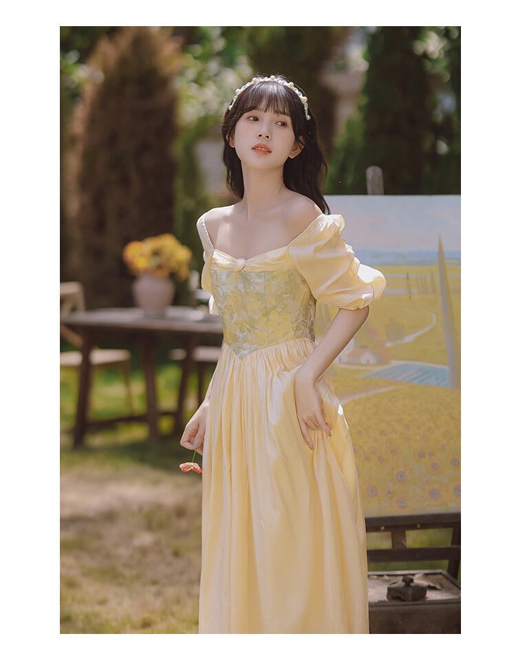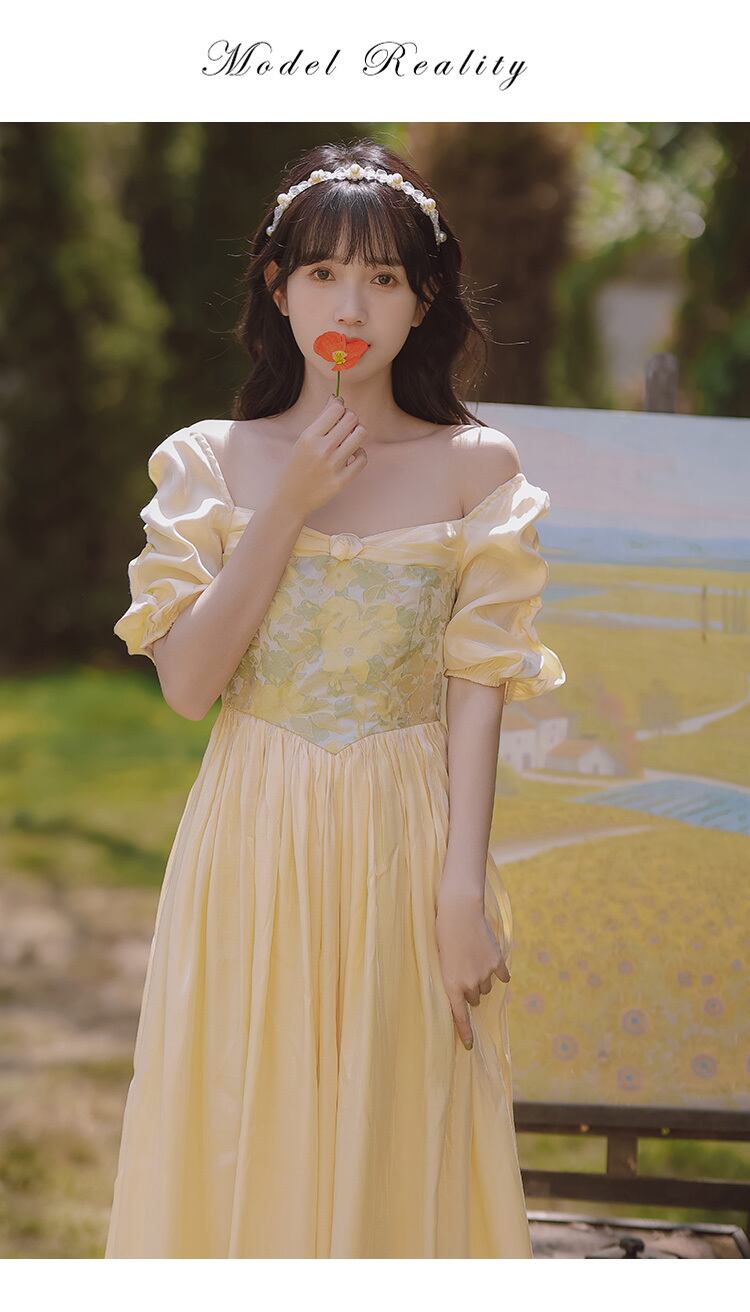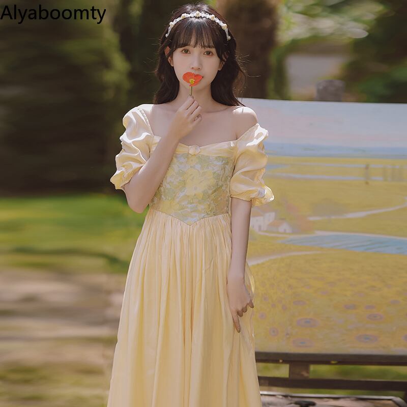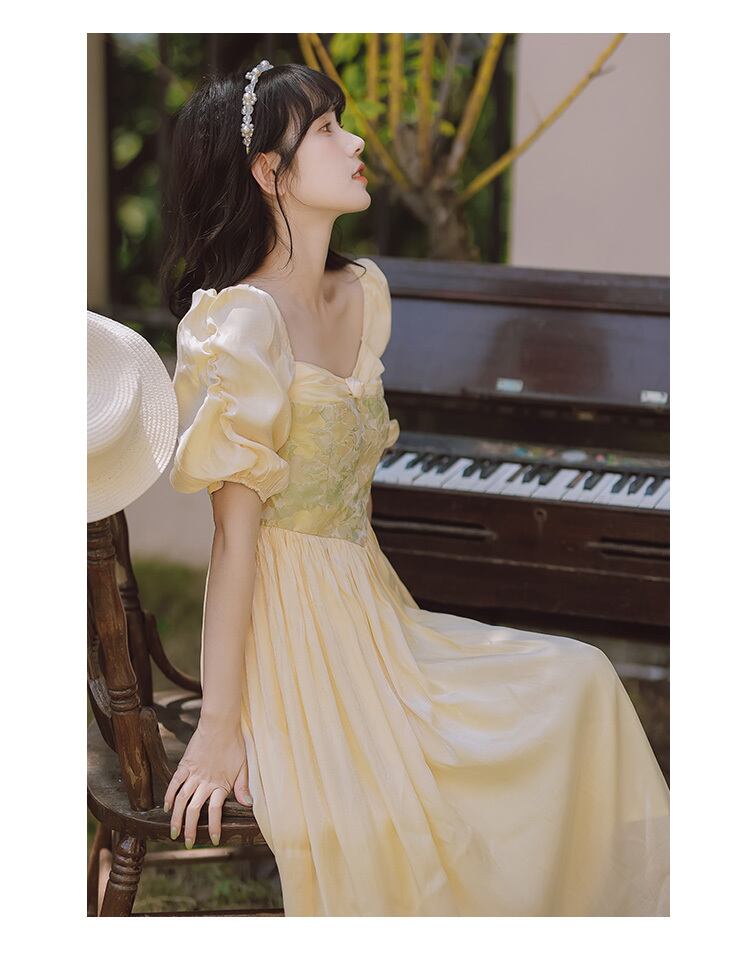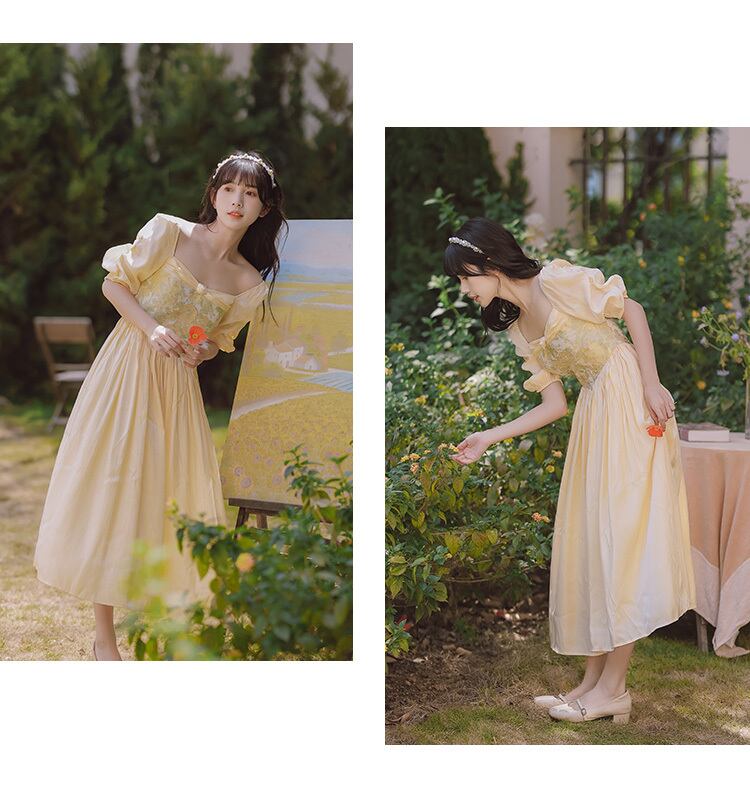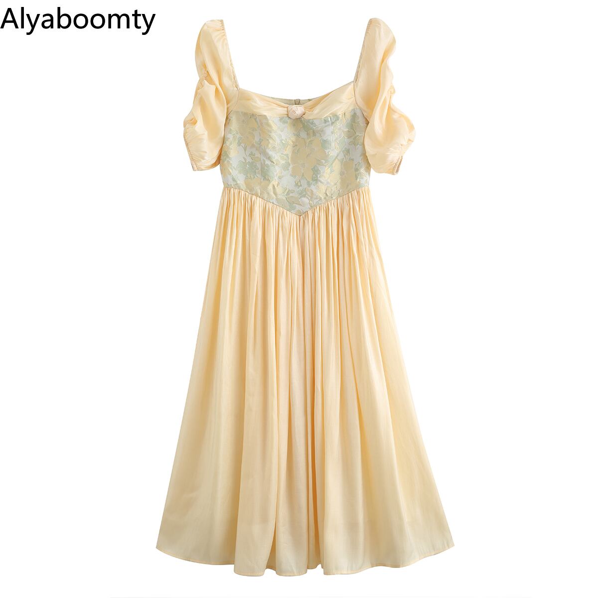 送料無料୨♥୧ サマーレディースドレス カラーパッチワークヴィンテージスリーブミディ 大人ガーリー スウィート キュート カジュアル 夏物 スクウェア ビンテージ AOS78845235799