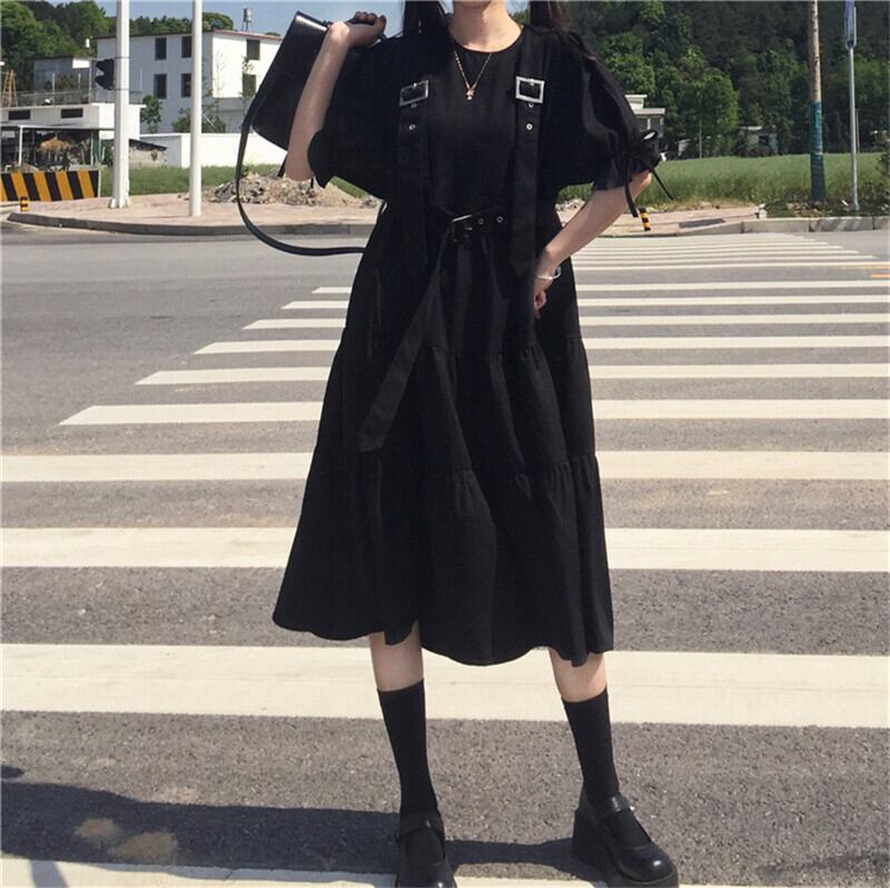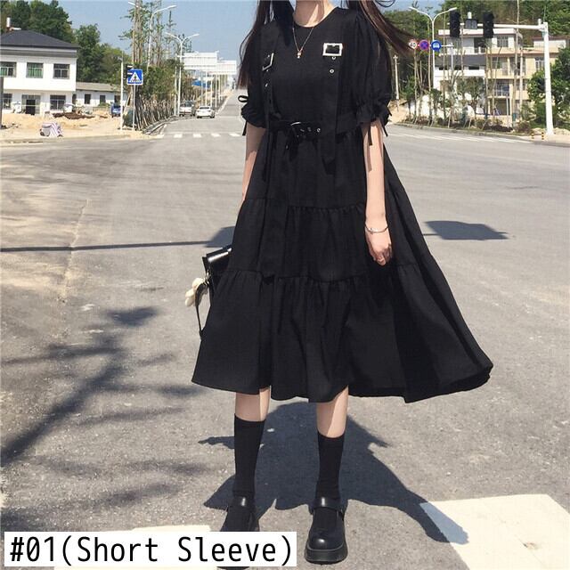 送料無料୨♥୧ レディースブラックミディドレス スタイルバンドヴィンテージフリルロングバギー ラッフル かわいい ビンテージ AOS57903891898