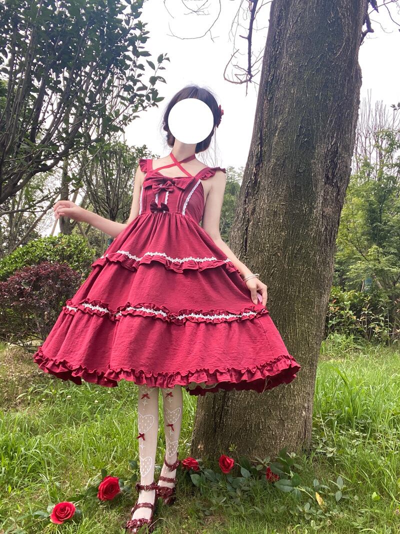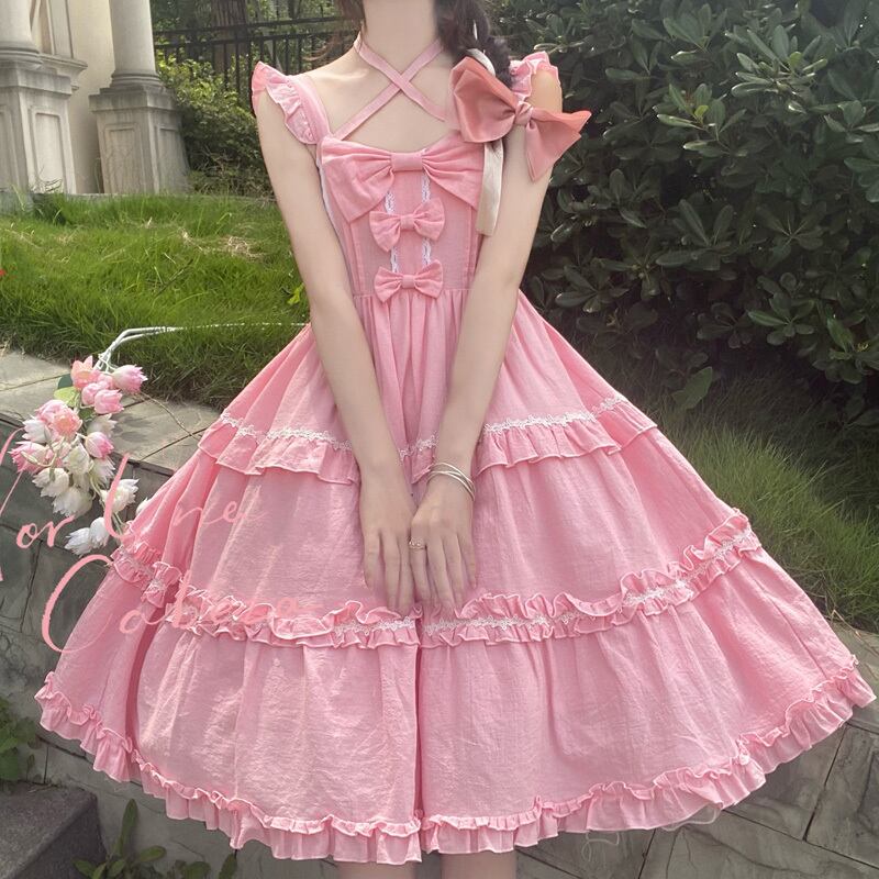 送料無料୨♥୧ カラーレディースドレス ブルーレッドリボンノースリーブフリル ピンク ラッフル 大人ガーリー スウィート キュート カジュアル AOS89773304371