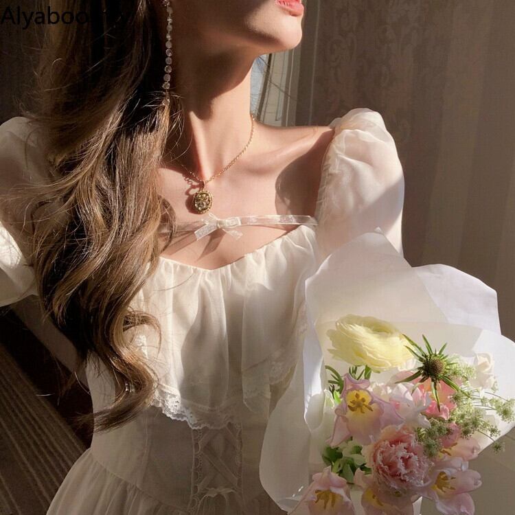 送料無料୨♥୧ スプリングオータムレディースミディドレス リボンバンド長袖スリーブレースフリル ロング ラッフル 春物 秋物 AOS21833805342