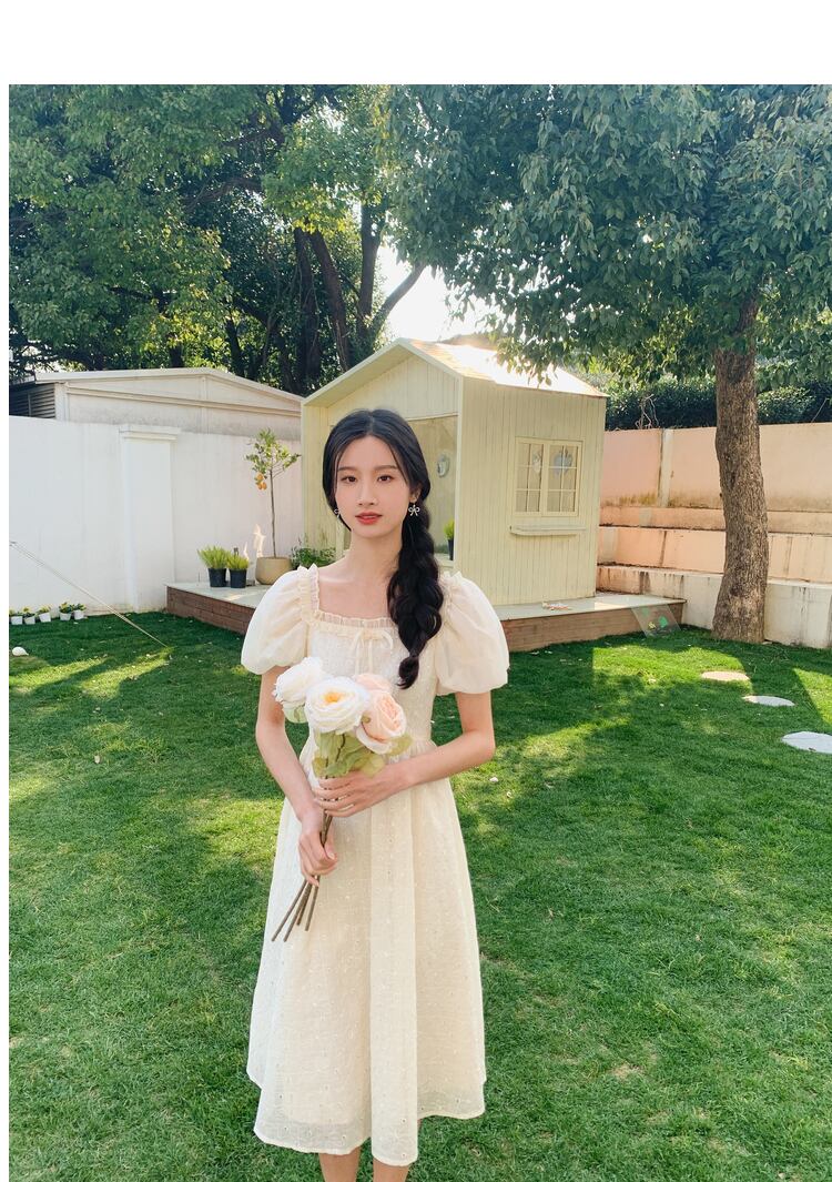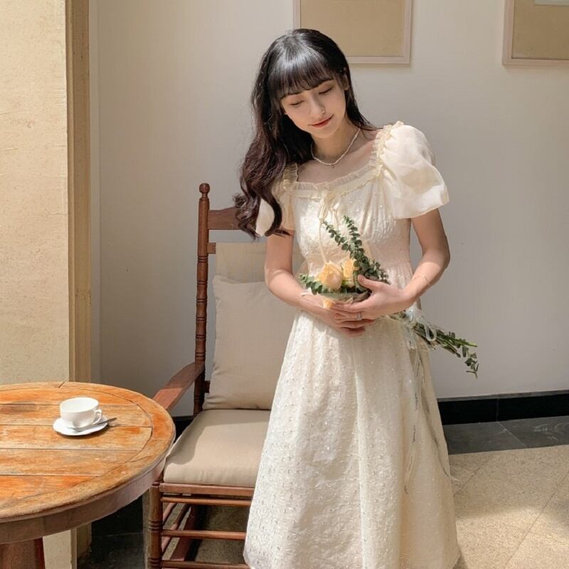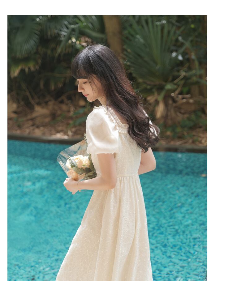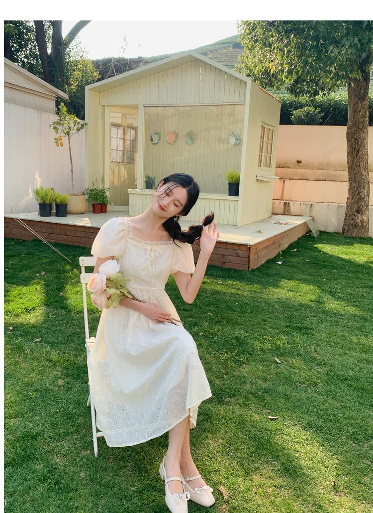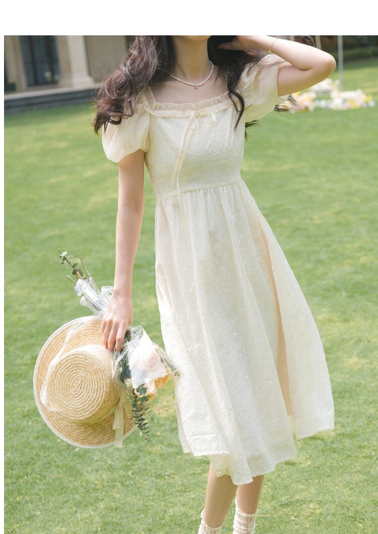 送料無料୨♥୧ サマーレディースドレス カラーフローラル刺繍スリーブ 大人ガーリー スウィート キュート カジュアル 夏物 花柄 スクウェア AOS76420821833