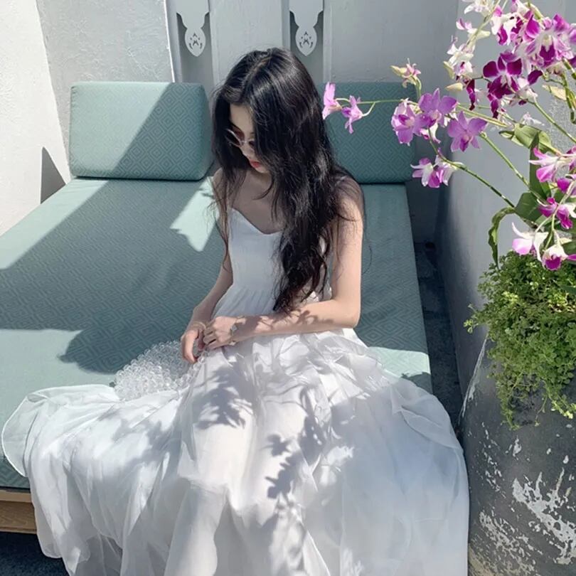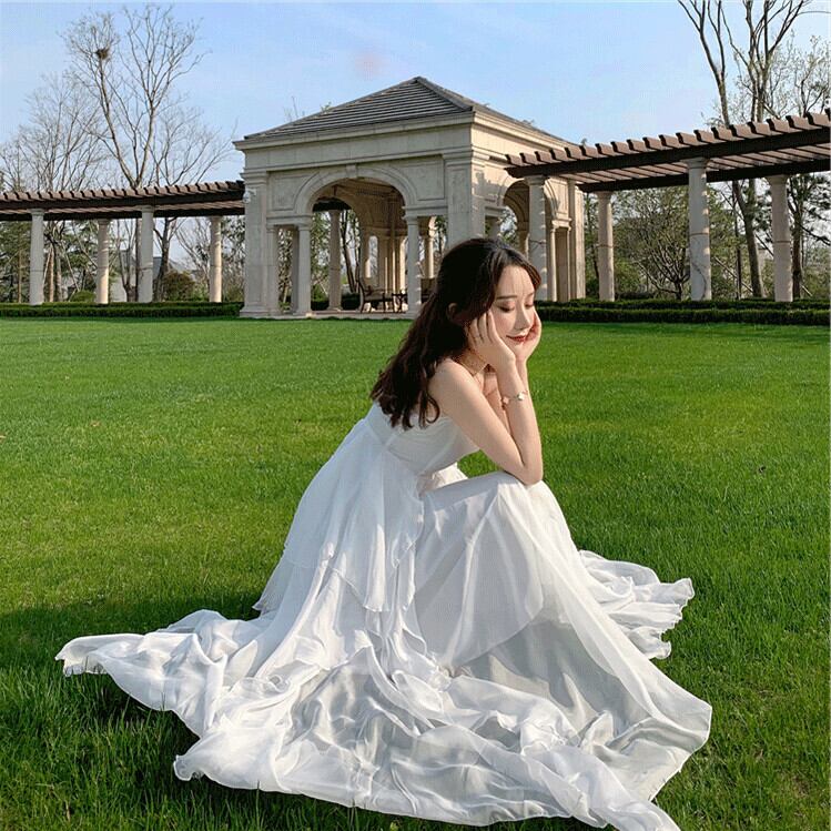 送料無料୨♥୧ サマーレディースホワイトマキシドレス Vネックフリルロングノースリーブ レッド 長袖 ラッフル 夏物 ビーチ AOS99697155078
