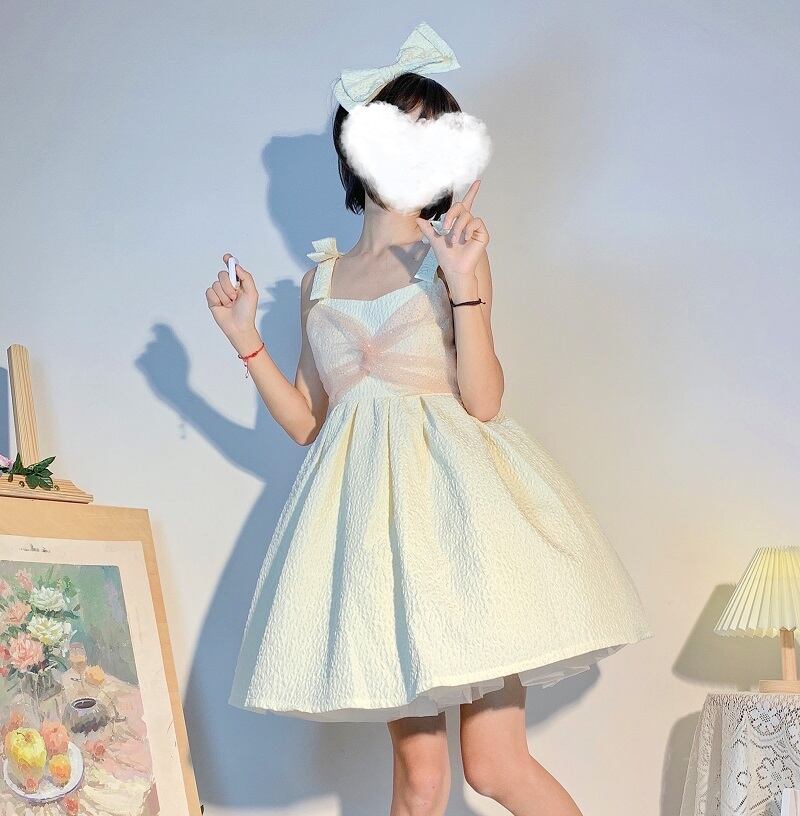 送料無料୨♥୧ サマーレディースミニドレス パッチワークイエローノースリーブ 大人ガーリー スウィート キュート カジュアル 夏物 AOS41554252855