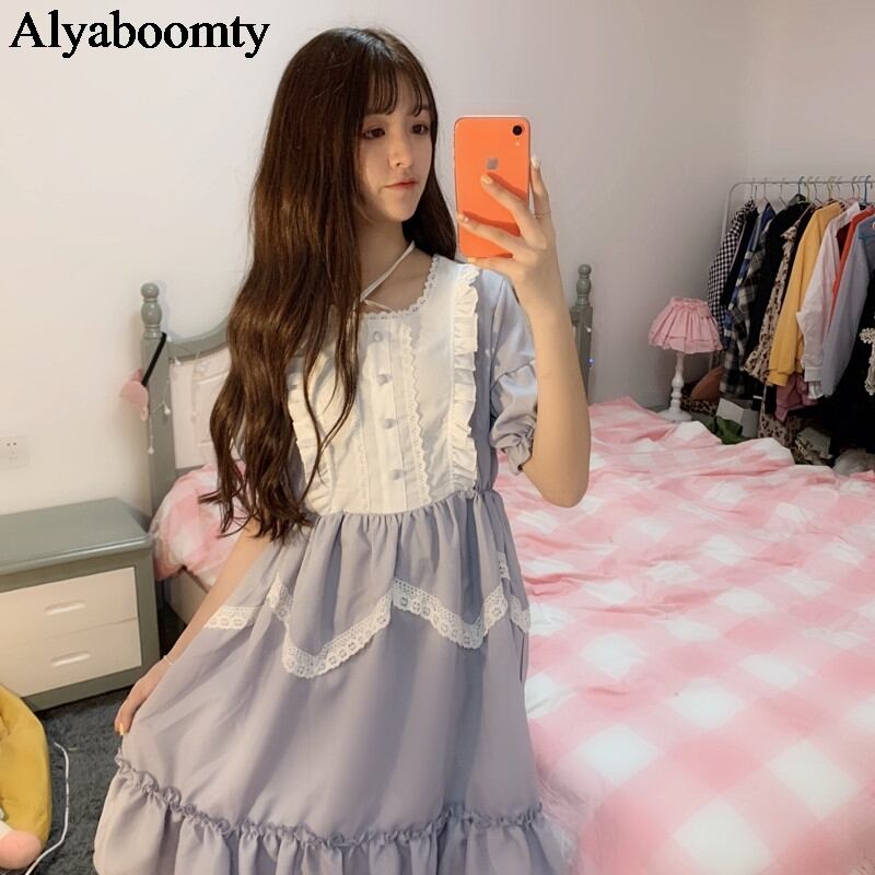 送料無料୨♥୧ サマーレディーススタイルドレス ブラックグレーバンドレースフリル ラッフル 大人ガーリー スウィート キュート カジュアル 夏物 AOS3429001633
