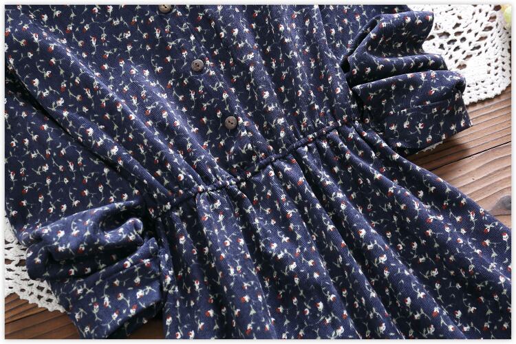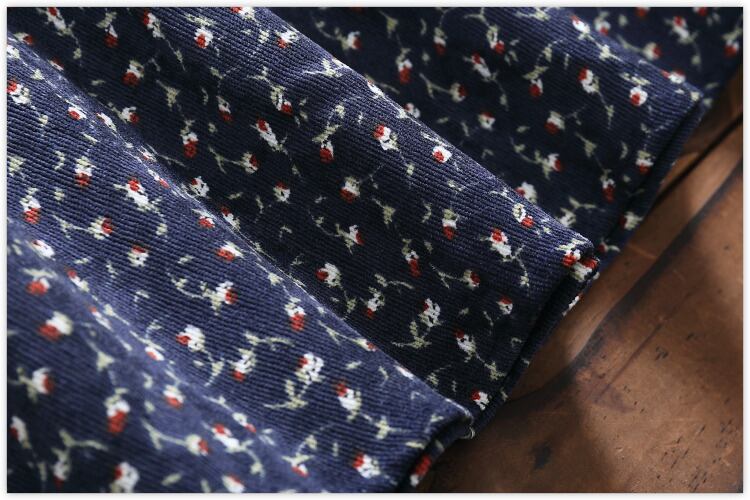 送料無料୨♥୧ オータムスプリングレディースロングドレス フローラルプリント柄ヴィンテージミディコーデュロイ 大人ガーリー スウィート キュート カジュアル 春物 秋物 花柄 ビンテージ AOS95925592005