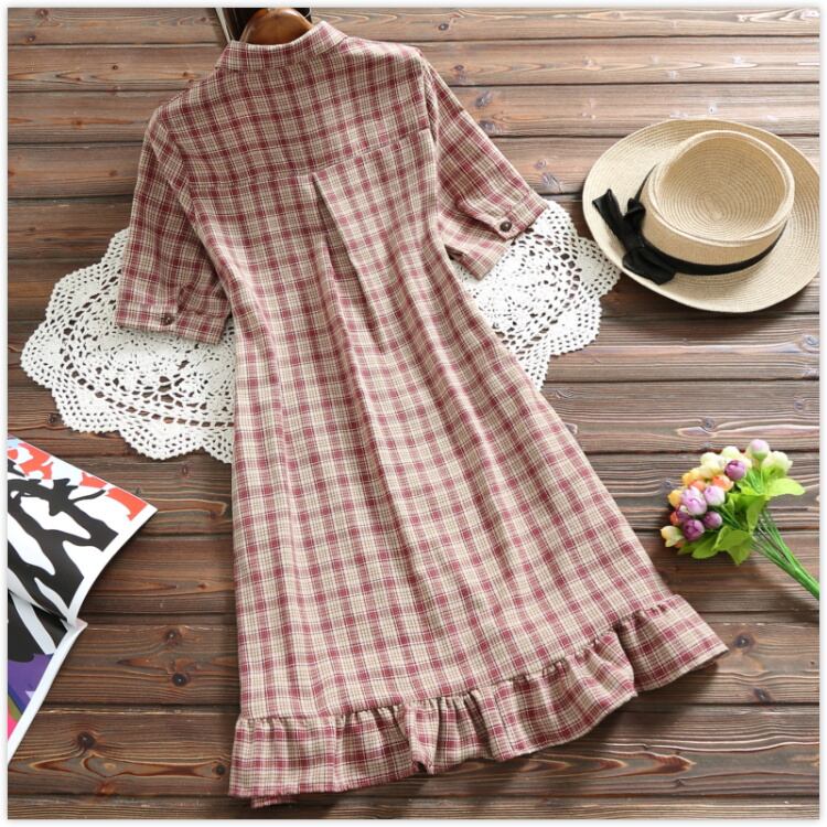 送料無料୨♥୧ スタイルサマーレディースシャツ ドレス ヴィンテージ格子柄ポケットミニフリルショート ラッフル 夏物 ビンテージ AOS79812491243