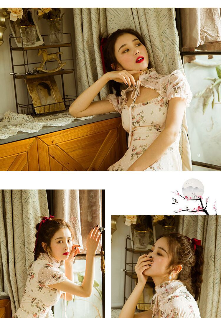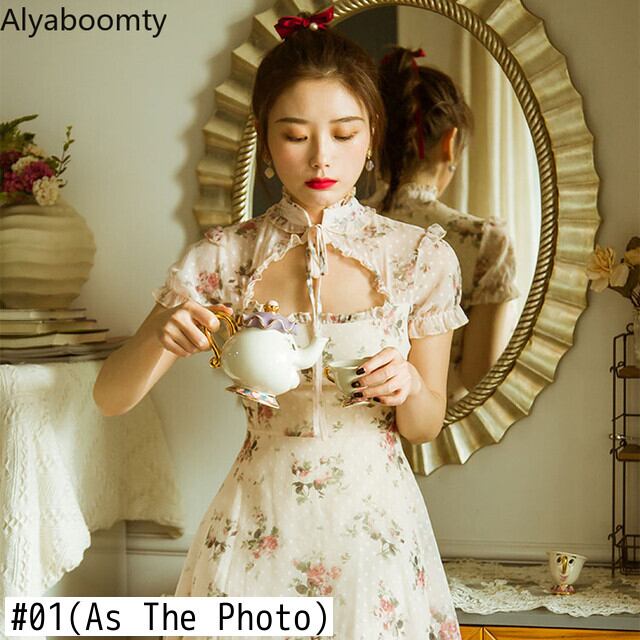 送料無料୨♥୧ スタイルサマーレディースミニドレス スタンドカラーカラーフローラルヴィンテージシフォン 夏物 花柄 ビンテージ AOS83750053165