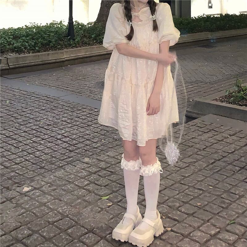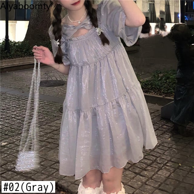 送料無料୨♥୧ サマーレディースミニドレス グレーリボンウェストバギースリーブフリル ラッフル 大人ガーリー スウィート キュート カジュアル 夏物 AOS9029647508