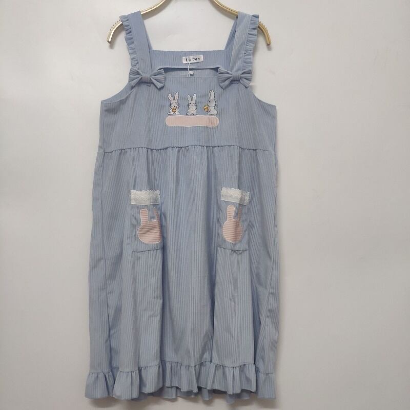 送料無料୨♥୧ スタイルレディースブルードレス ルーズ刺繍ノースリーブフリル ラッフル 大人ガーリー スウィート キュート カジュアル AOS62552970008