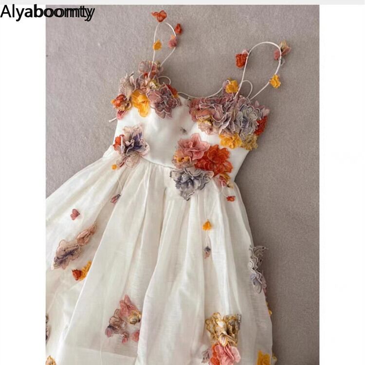 送料無料୨♥୧ サマーレディースフローラルミディAラインドレス ホワイト 大人ガーリー スウィート キュート カジュアル 夏物 花柄 フラワーデザイン AOS2450763181