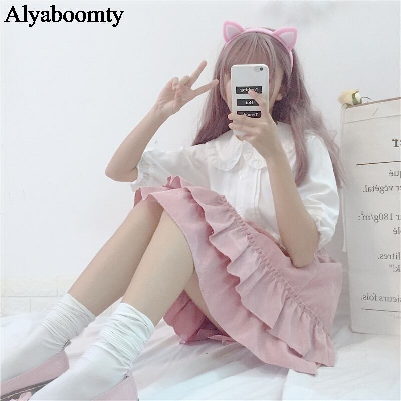 送料無料୨♥୧ サマーレディーススタイルシフォンブラウス カラーホワイトブラック半袖スリーブシャツ ショート ピンク ハーフスリーブ 大人ガーリー スウィート キュート カジュアル 夏物 AOS76628756739
